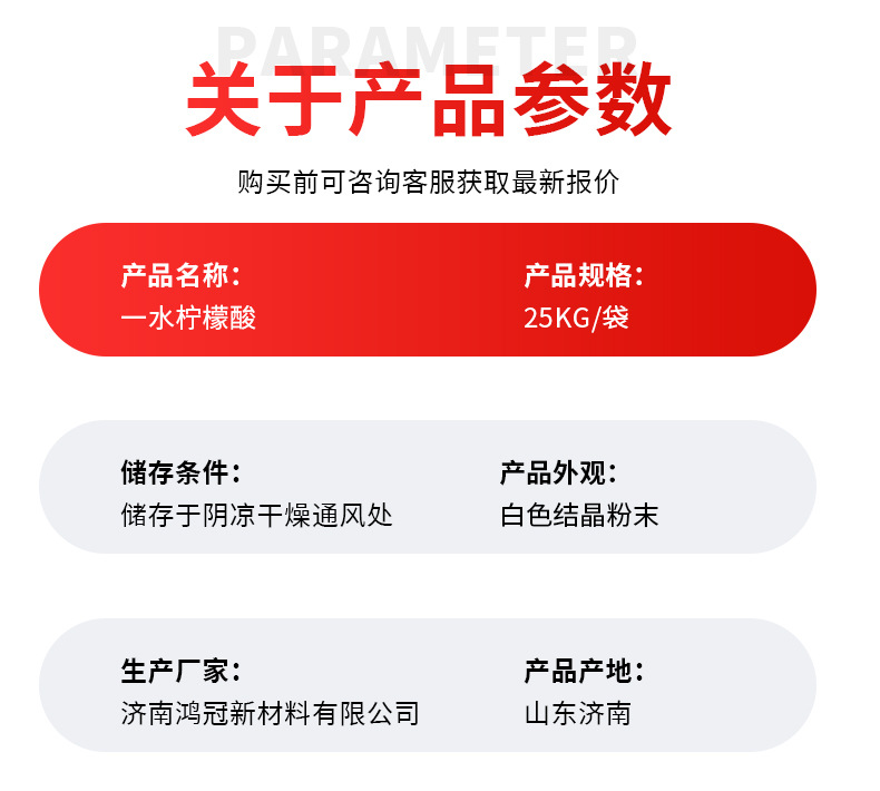 クエン酸一水食品級ジュース飲料酸性度調整剤洗浄剤汚水処理クエン酸一水