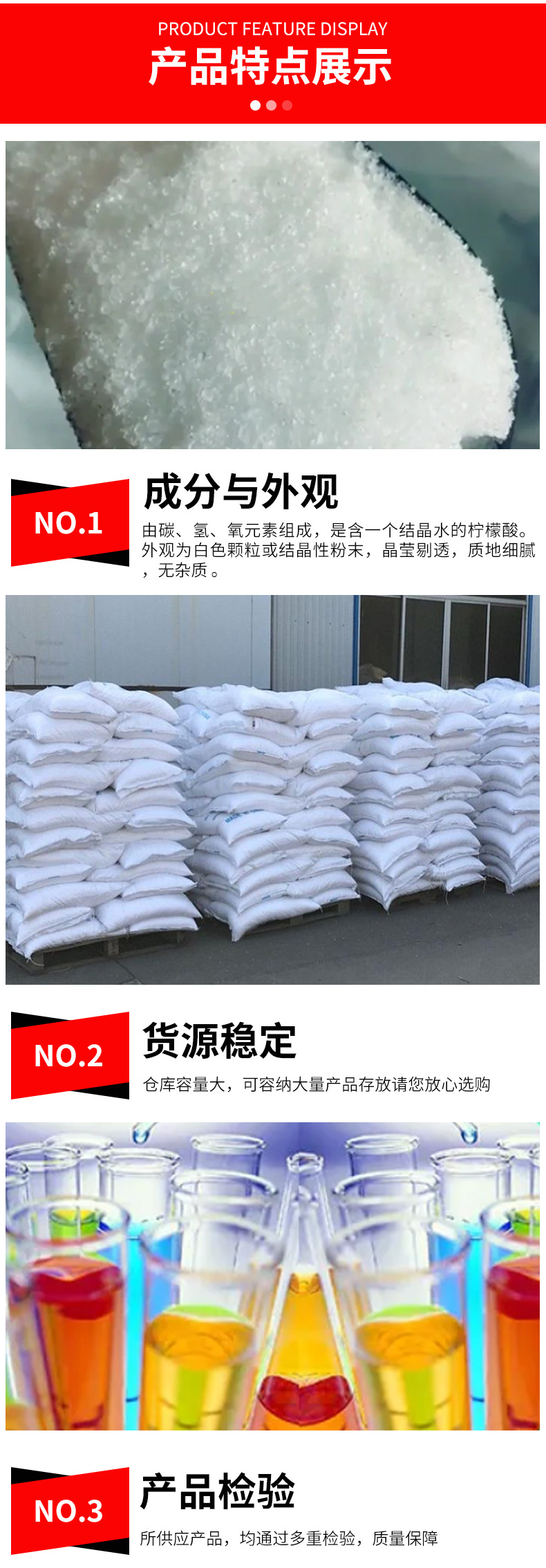 一水柠檬酸厂家直销食品级柠檬酸酸度调节剂污垢柠檬酸现货供应