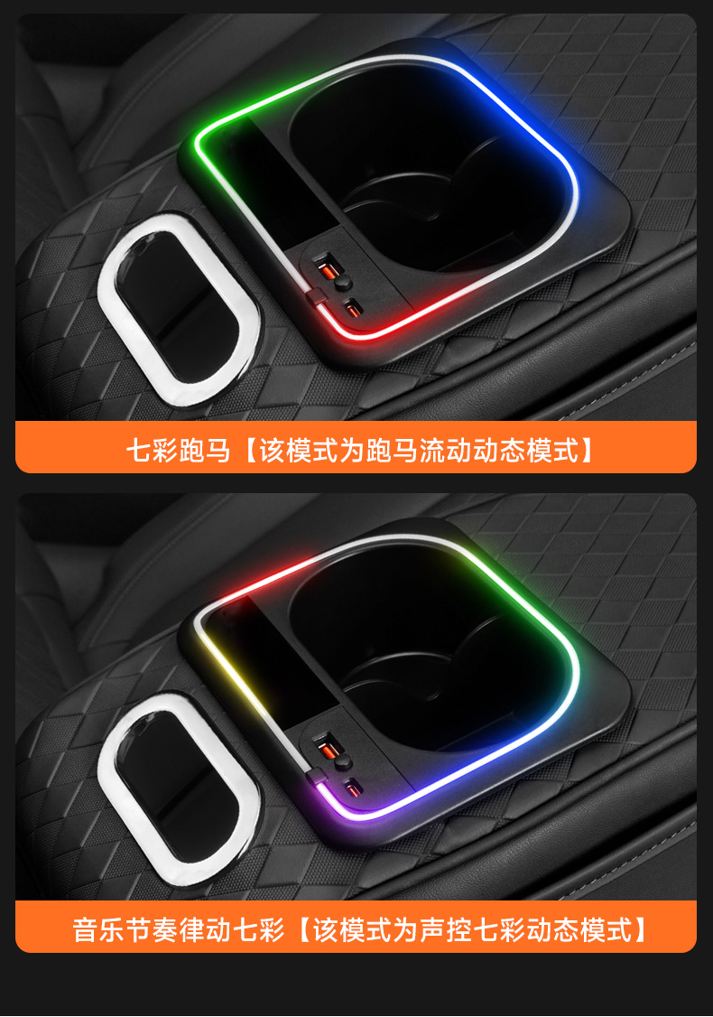 新しい車の手すりの収納箱のカラフルな雰囲気のランプの充電の内装用品のティッシュの箱の収納箱の多機能