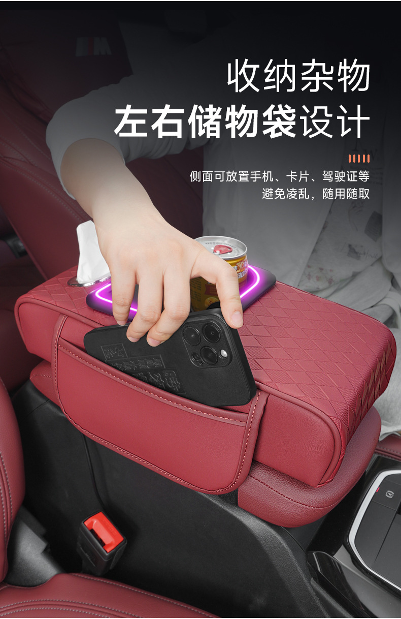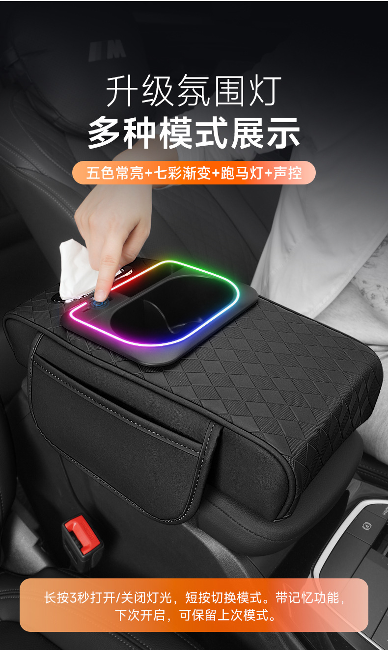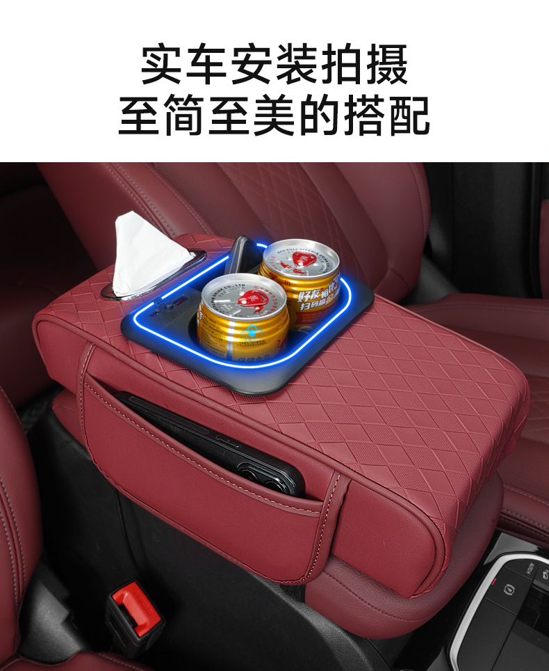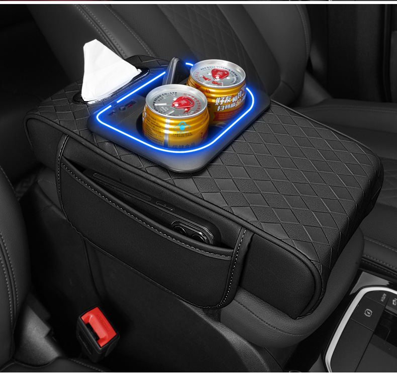 車のアームレストボックス高さパッド新しい雰囲気ライトナパパターン車の収納ボックスウォーターカップホルダー車のティッシュボックス