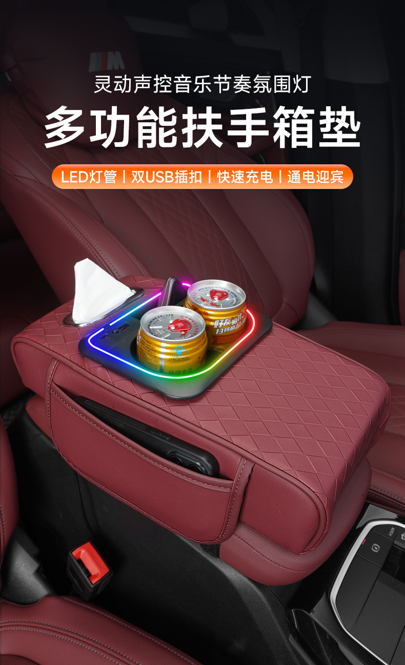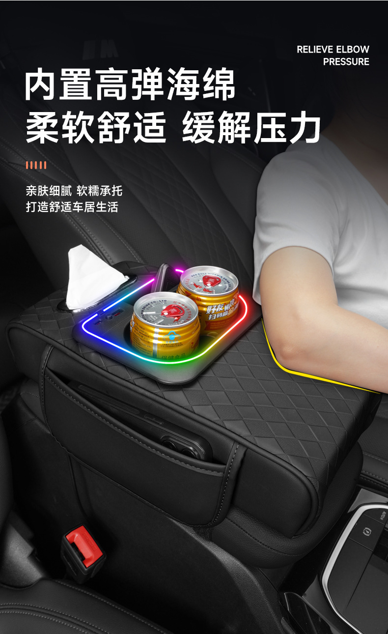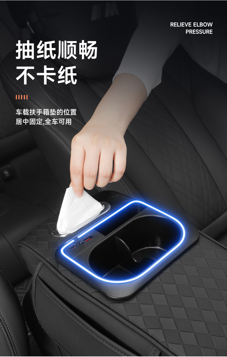 車のアームレストボックス高さパッド新しい雰囲気ライトナパパターン車の収納ボックスウォーターカップホルダー車のティッシュボックス