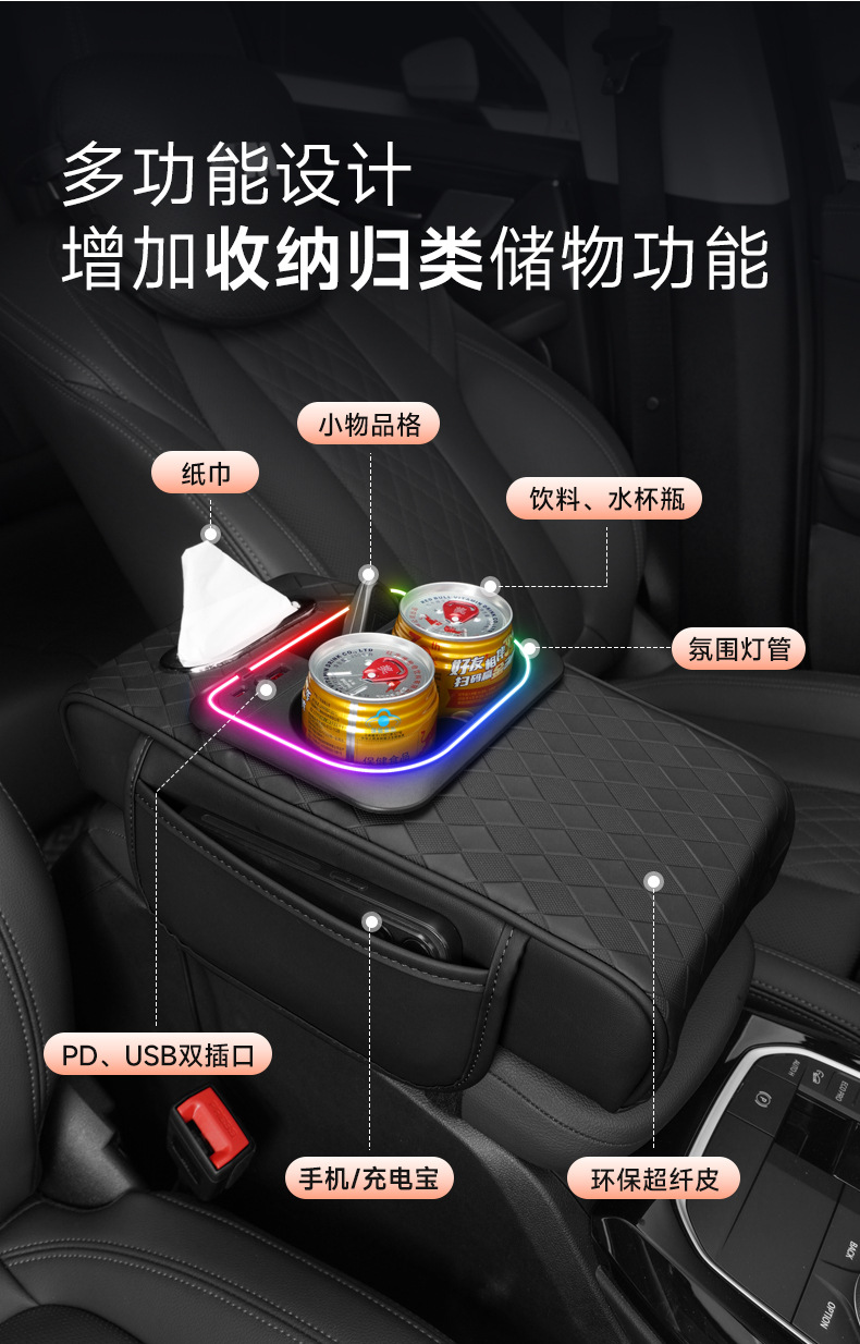 汽车扶手箱垫增高垫车载中央扶手纸巾盒收纳袋水杯架一体扶手箱垫