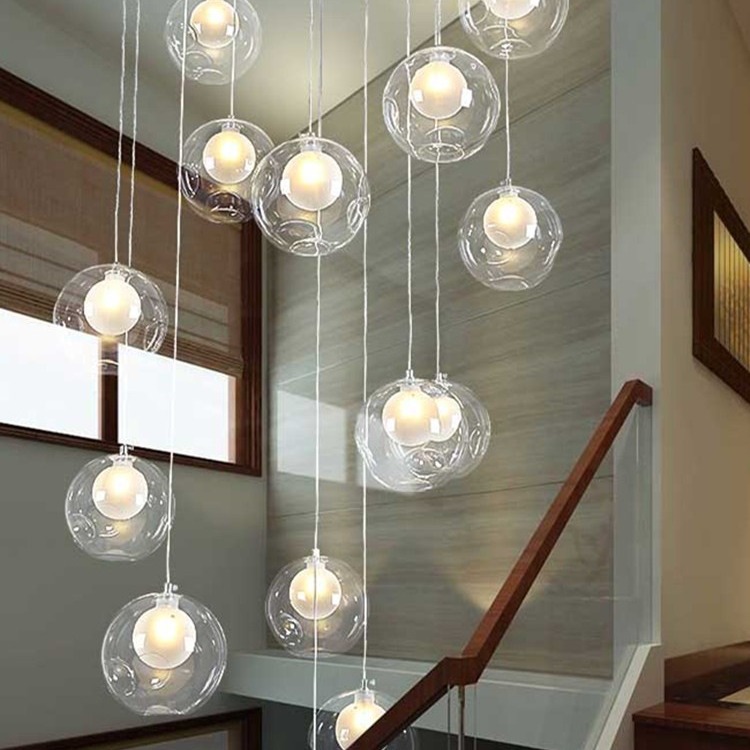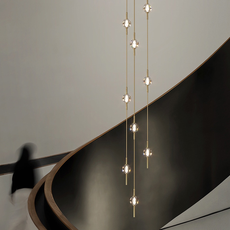 复式旋转楼梯长吊灯现代轻奢水晶球全铜吊灯简约loft别墅公寓吊灯