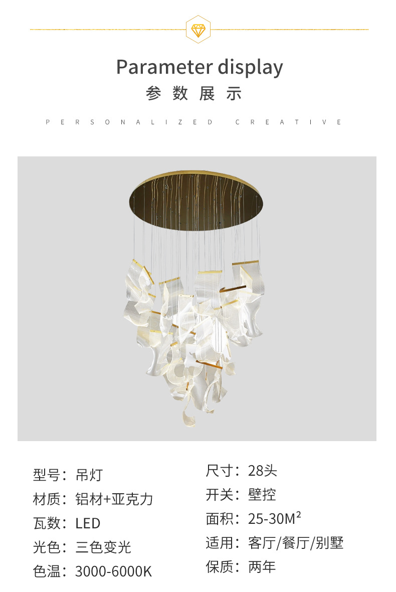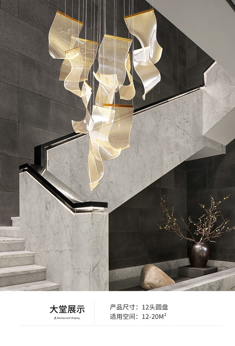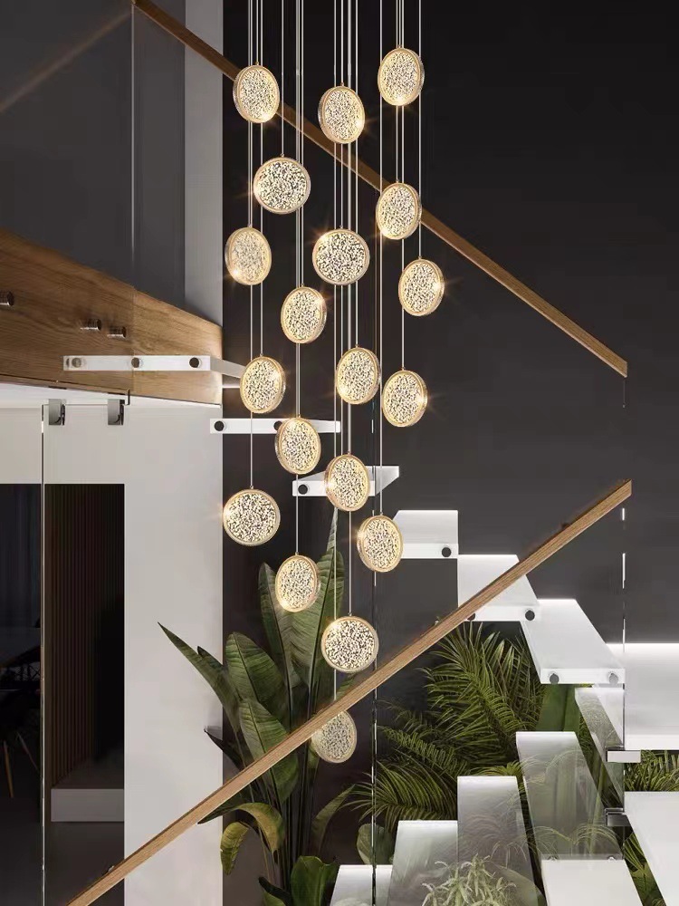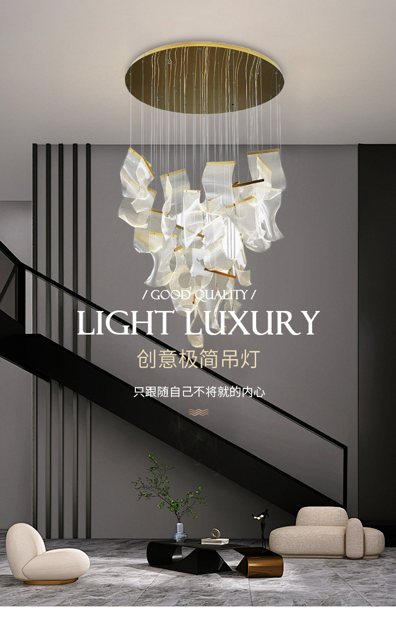 デュプレックスハウス大型シャンデリアポストモダンシンプルライト高級リビングルームランプクリエイティブ北欧ランプ階段レストランアート照明