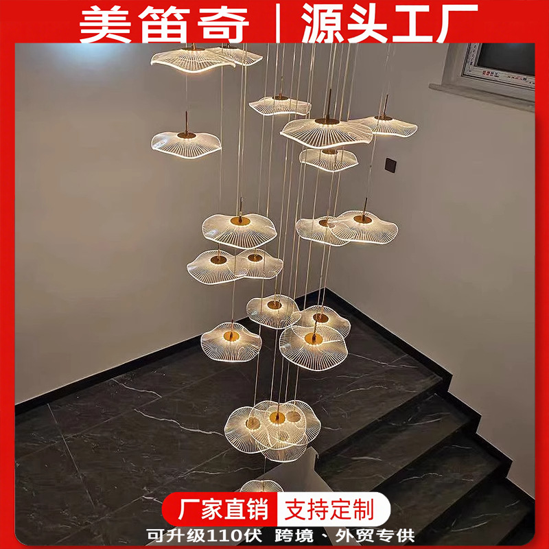 階段の明かりの長いシャンデリアの複式楼の客間の現代のloftのつり線の明かりの新しい中国式の北欧のハスの葉のマンションのアイデアの明かり