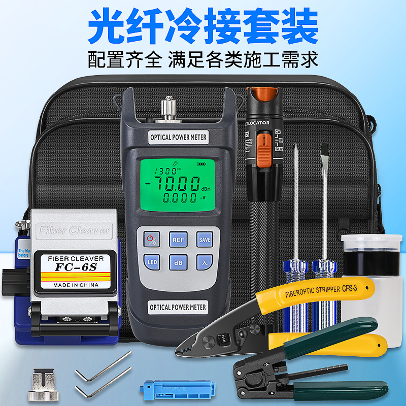 光ファイバーツールセットパッケージ コールドスプライスセット 光パワーメーター 赤色光ペン FC-6S カッティングナイフ ミラーペンチ ドライバー