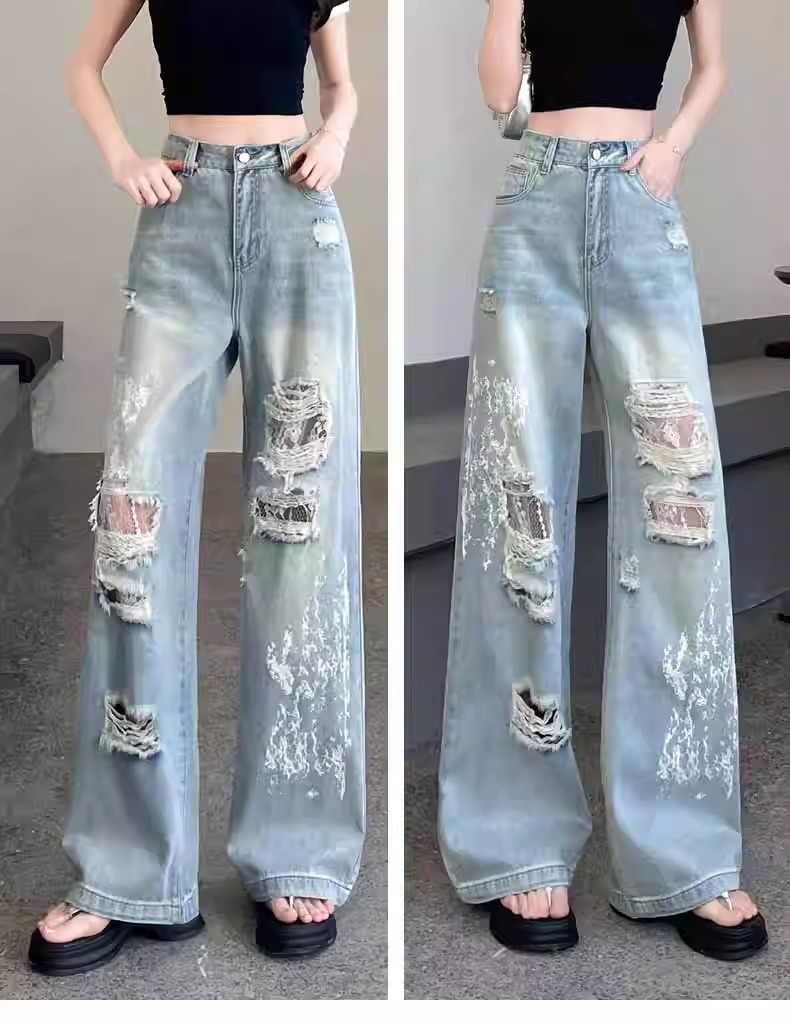 水色のレースは穴が開いています。女性2025夏の薄いデザイン感があります。