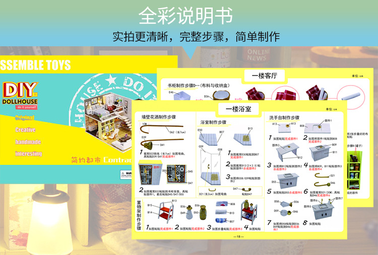 3、产品是由真实家居环境微缩而成,手工制作拼装,产品内附有详细的制作说明书