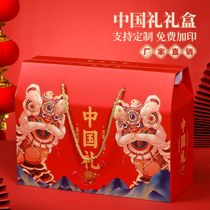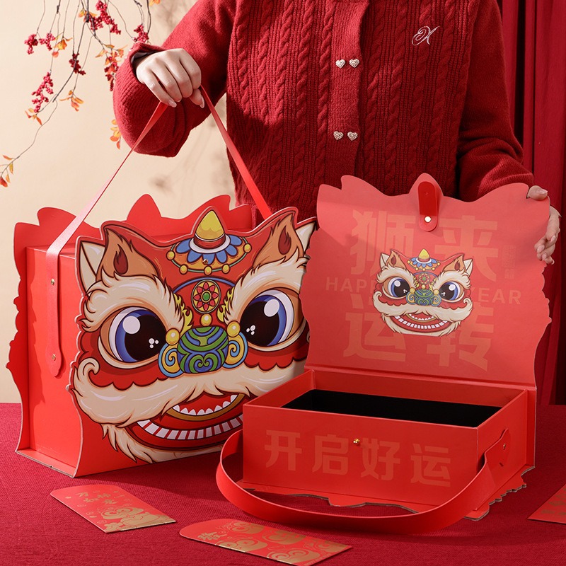 2026新年醒狮手提盒加大容量年货春节礼盒干货坚果腊味包装盒空盒