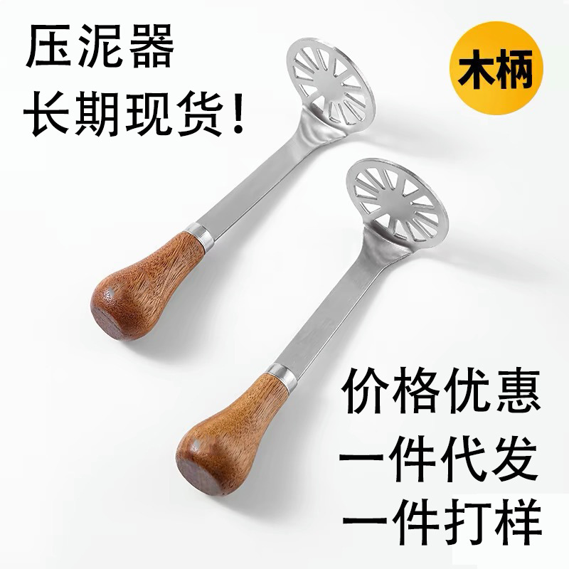 現物ニンニクつぶし器ステンレス立式マッシュポテト押し木柄食品級圧泥神器マッシュポテトつぶし器家庭用