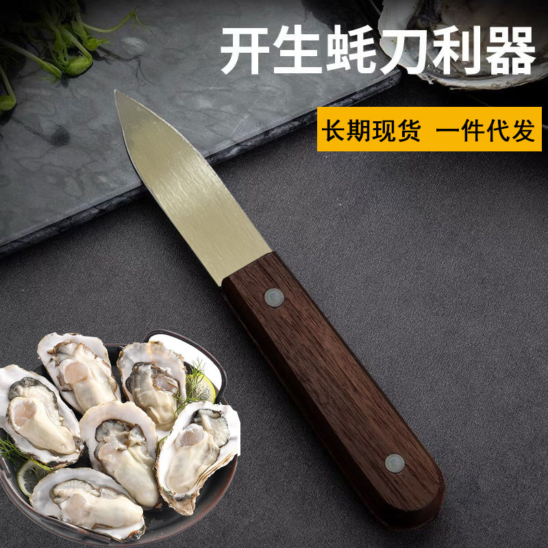 ステンレスの厚い木の柄は生のカキの刀を開けます。