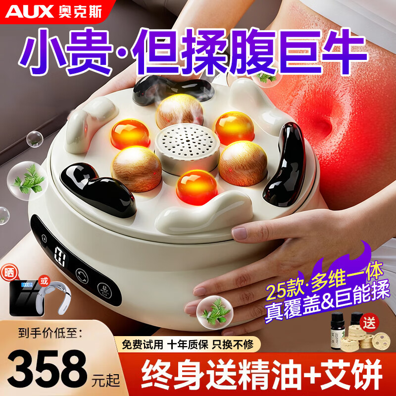 奥克斯砭石揉腹仪腹部按摩器自动加热揉肚子神器砭石小腹按摩益生