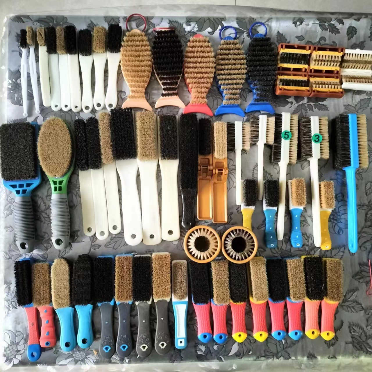 当店の猪毛ブラシ、ダイヤモンドクリーニングブラシ、クルミクリーニング&ポリッシングブラシ、硬毛ブラシ、黒毛ブラシなどすべて