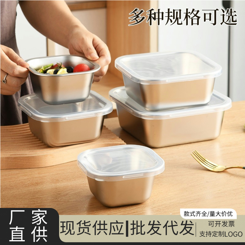 ステンレス日本式密封分注箱蓋付き食品級鮮度保持箱四角い弁当箱家庭用商用味箱
