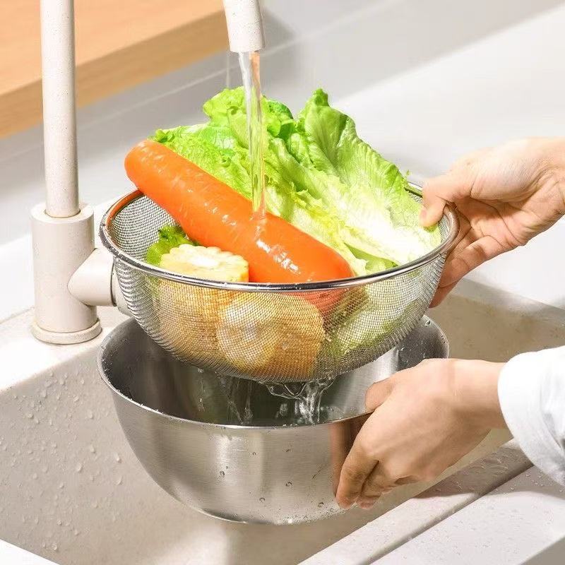 国境を越えたステンレス鋼が厚い野菜を洗う盆の水たまりかごの家庭用台所で米を洗う神器の野菜を洗う盆を洗う