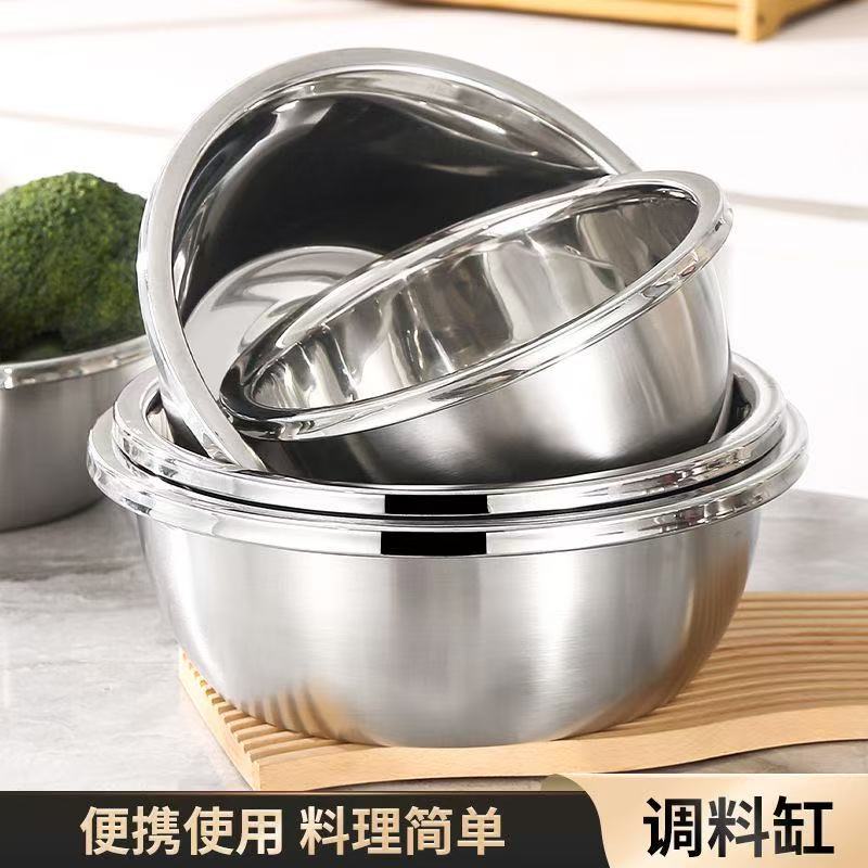 極厚ステンレス洗面器、非磁性調味料タンク、ベーキングと卵泡立て器、ヨーロピアンスタイルのつや消し洗面器、深めの野菜洗面器、スープ洗面器卸売
