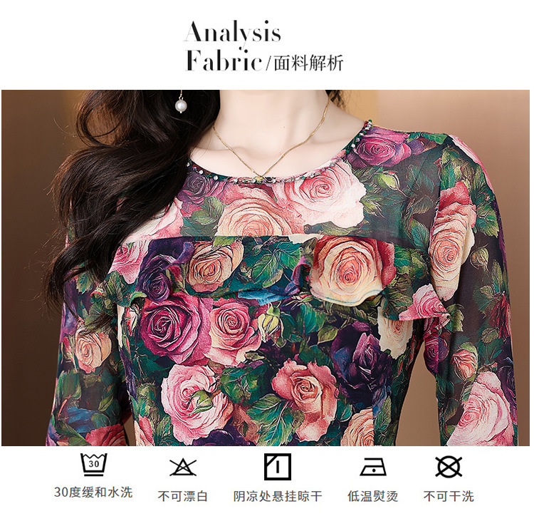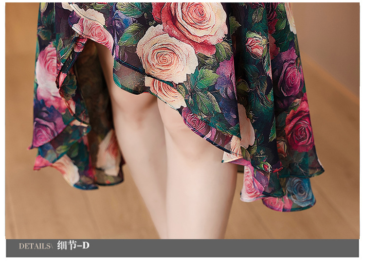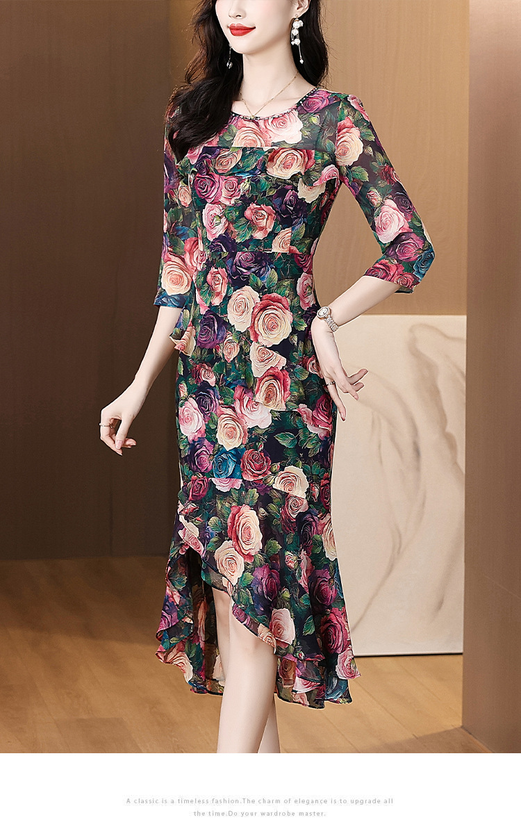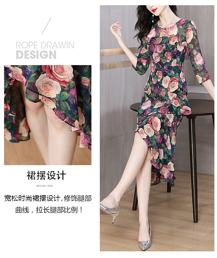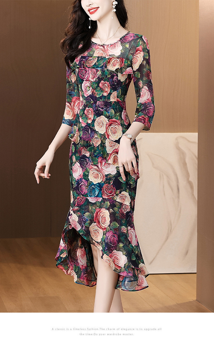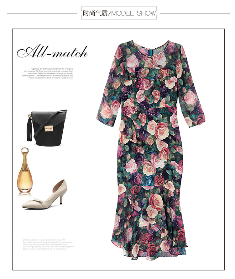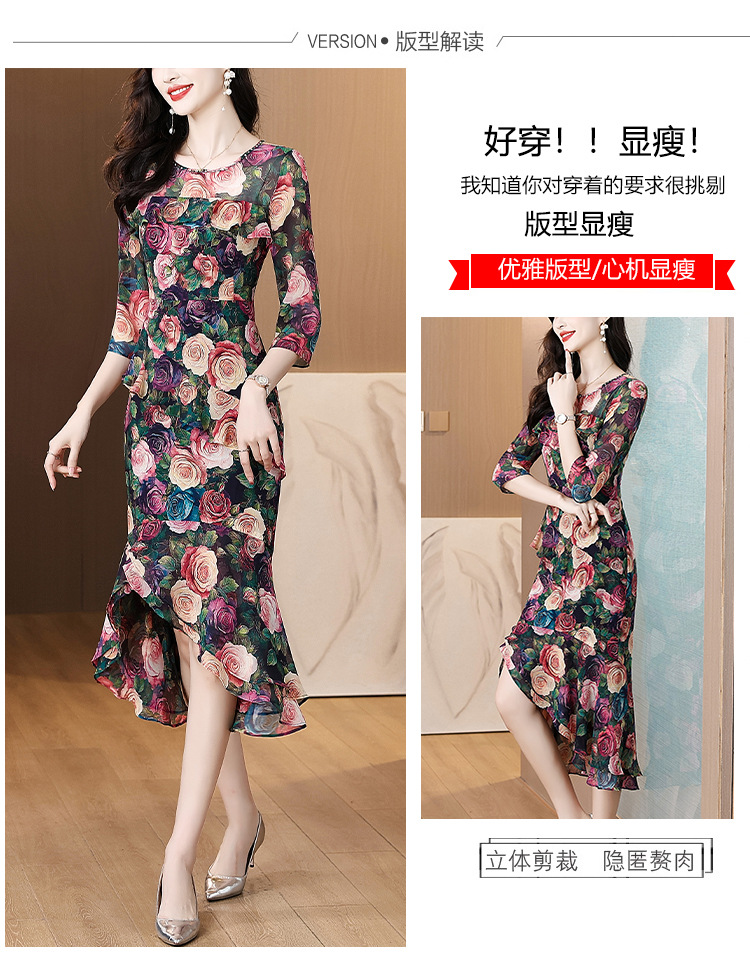 Zyfs 3928バラのプリントのワンピースの女性2025夏の新型の高級感のフランス式のレトロな修身の魚尾のスカート