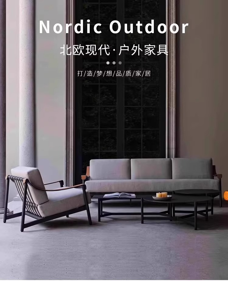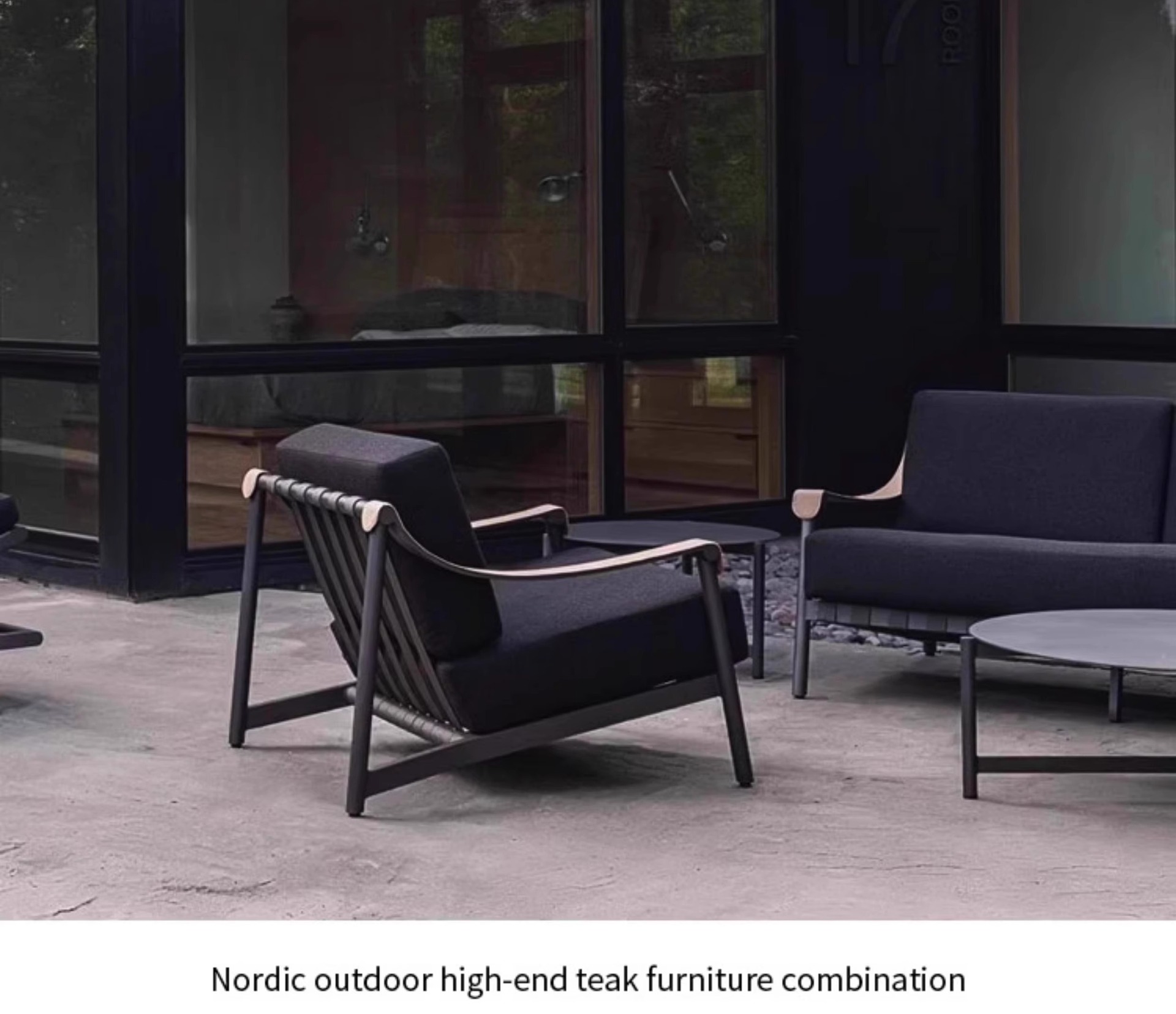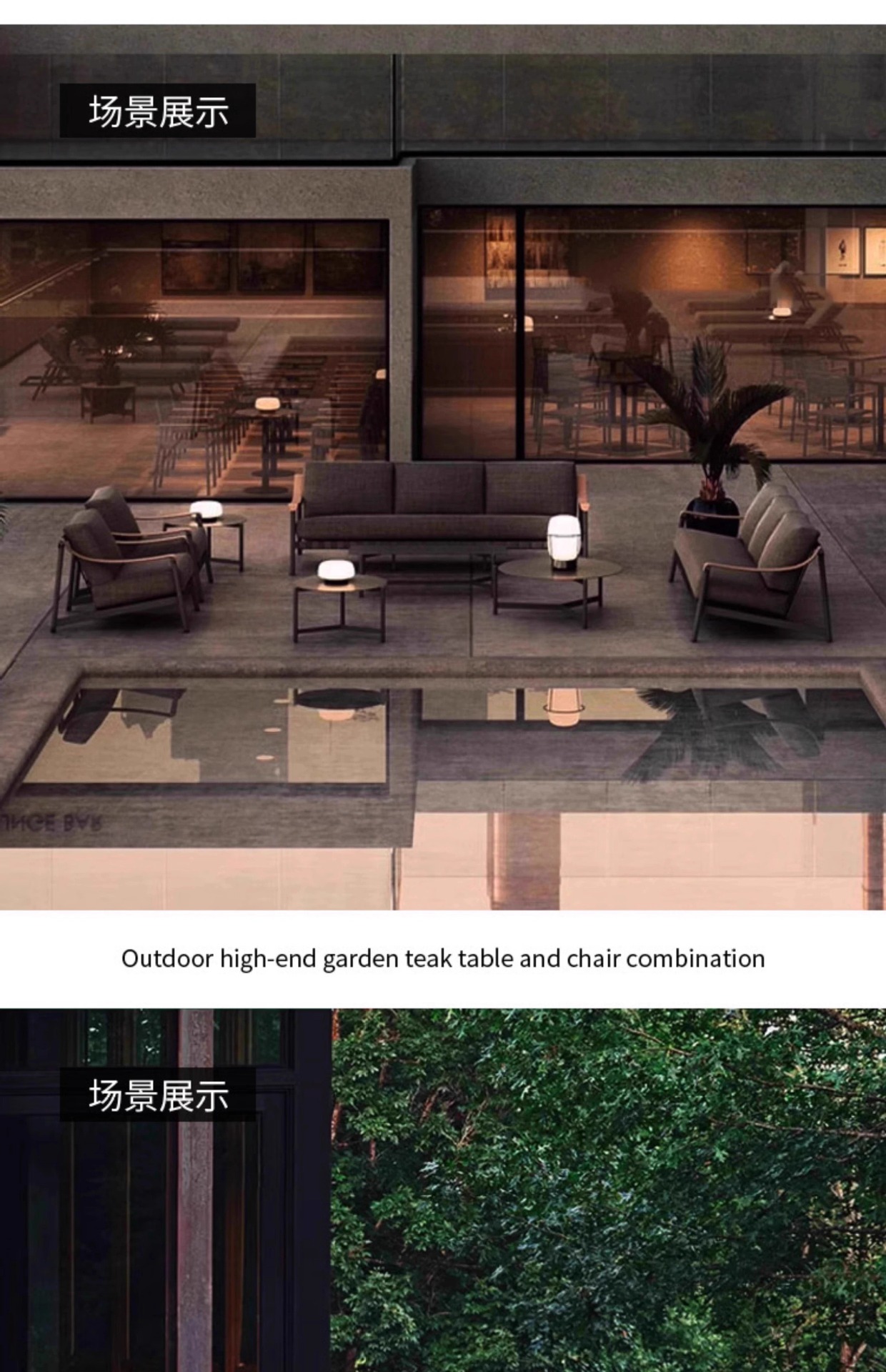 北欧屋外無垢材ソファヴィラ中庭ガーデン籐織ソファ組み合わせハイエンドバルコニーチークソファ家具