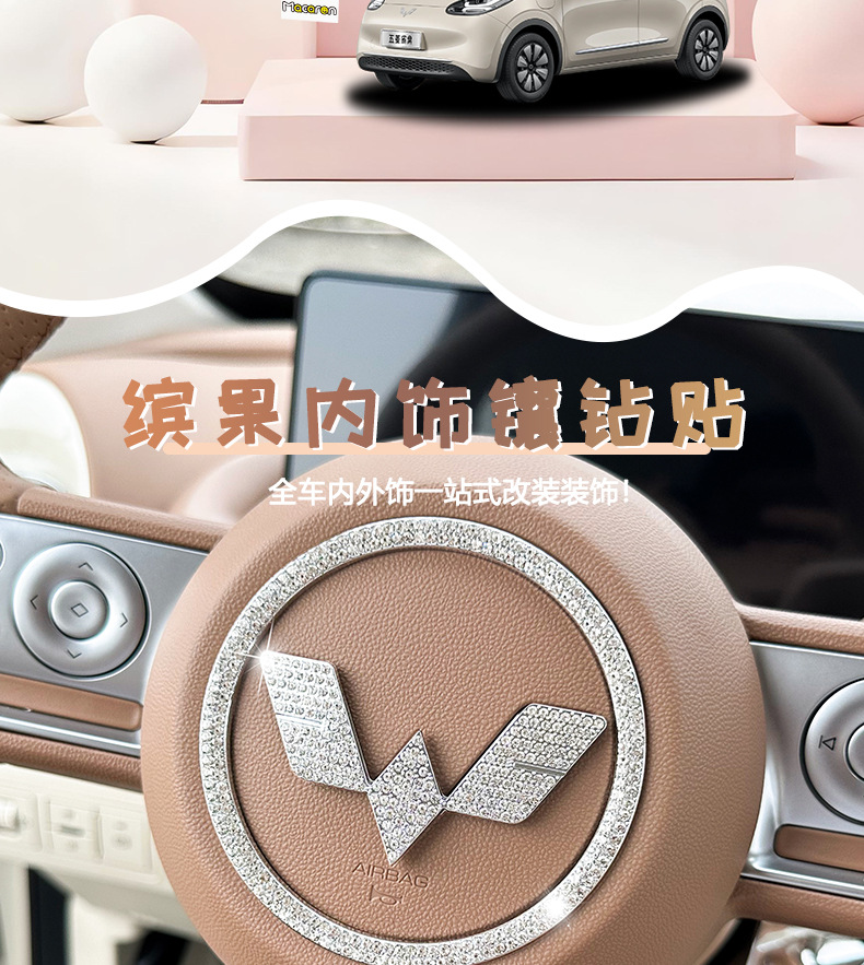 25種類のカラフルな果物の内装はハンドルの装飾を配置してドリルを入れて五菱のビンゴの車内の装飾を貼って車の標識を改造します。