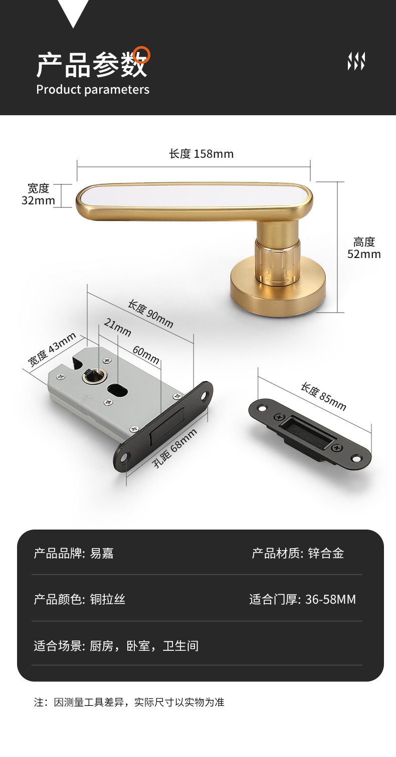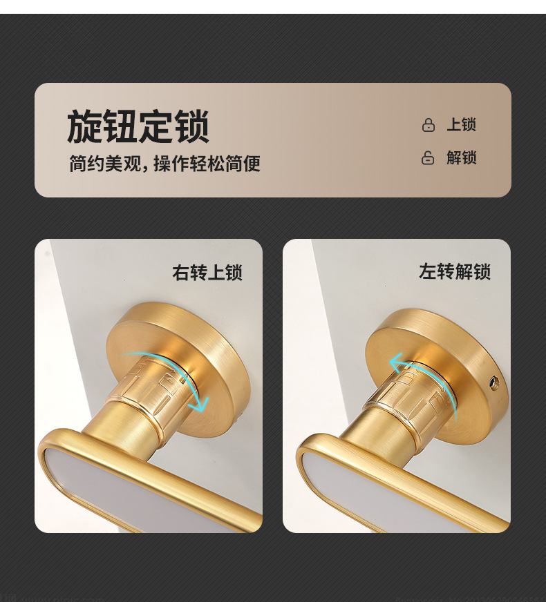 レトロ新中国式寝室室内ドアロック木製ハンドルシンプル一体式黄古銅静音磁気吸引ドアロック