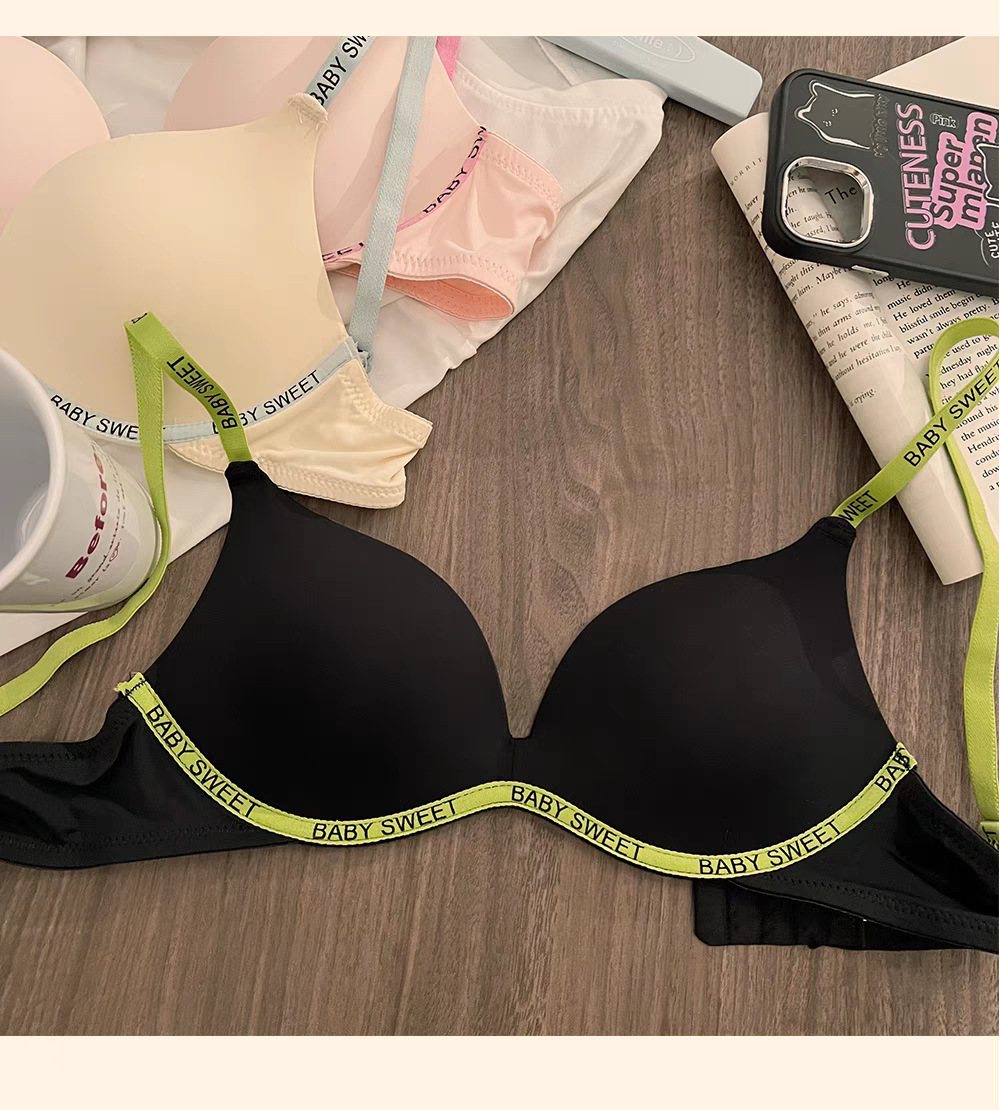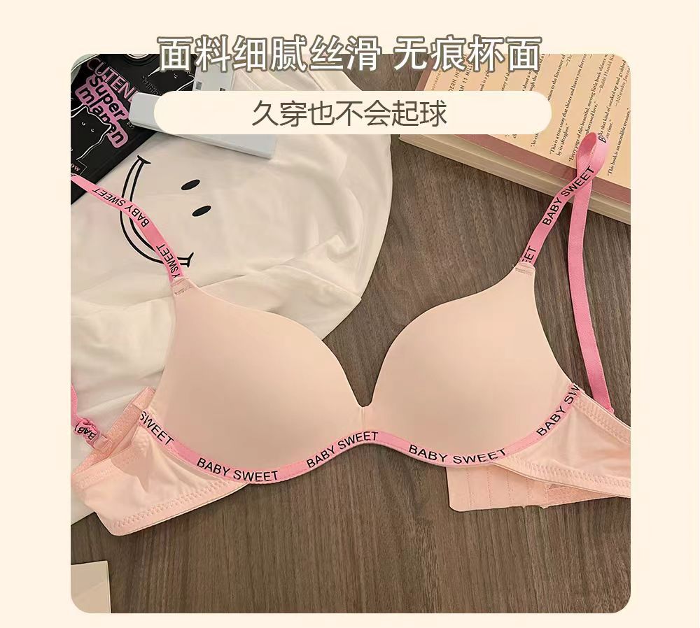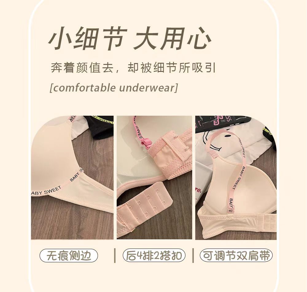 人気の漫画甘辛ピンクベリードーパミンかわいい下着女性の小さな胸プッシュアップ快適な痩身シームレスブラセット