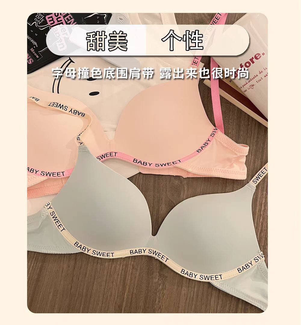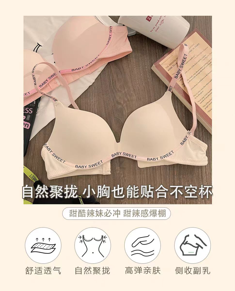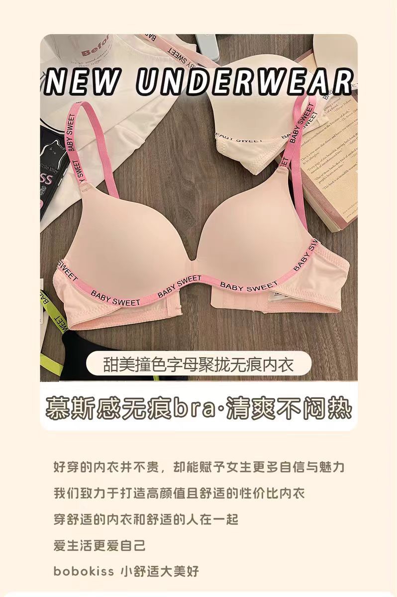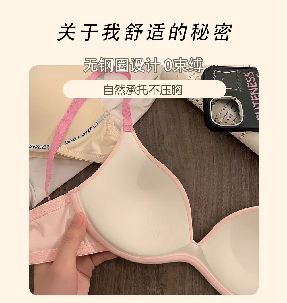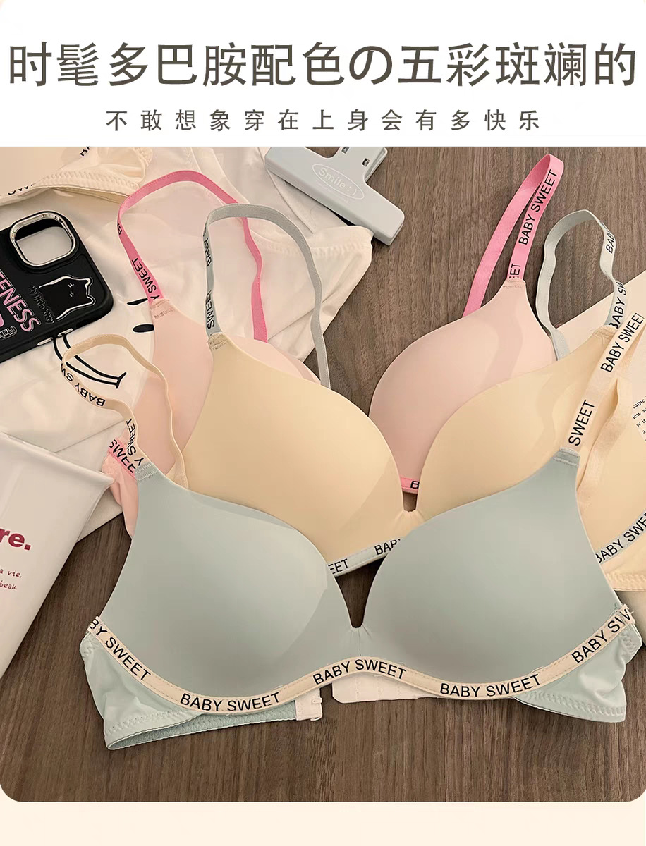 【彩色多巴胺】新款无痕文胸小胸显大聚拢内衣内裤女套装女无钢圈