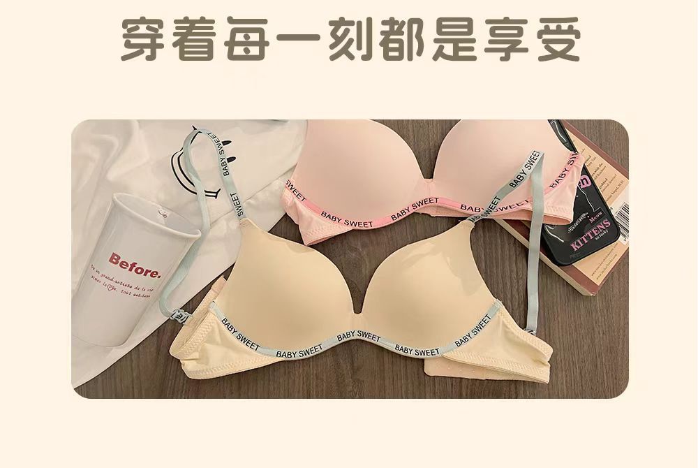 2cmの小さな地雷の小さな胸が大きく見えるプッシュアップレタリングブラジャー、ワイヤーなし、丸くてヌード感のある肌に優しいワンピースブラジャー