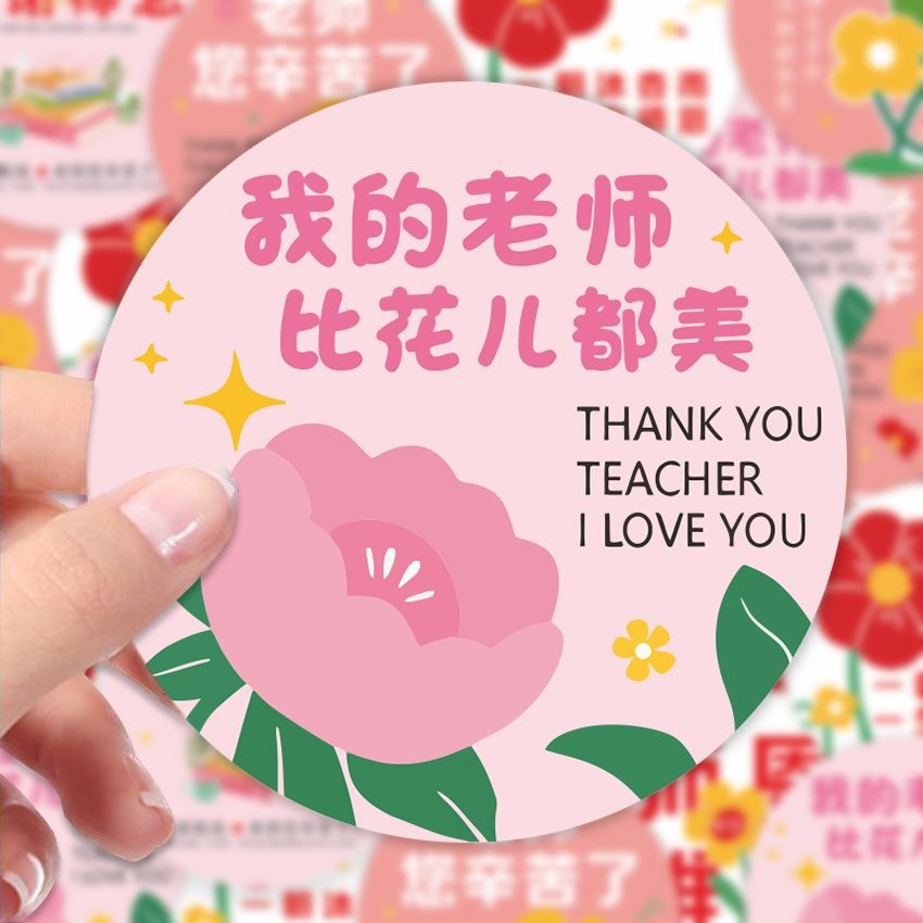 教師の日ギフトシールステッカー、先生に感謝、栽培に感謝、ラウンド粘着ステッカーラベル直径 6cm