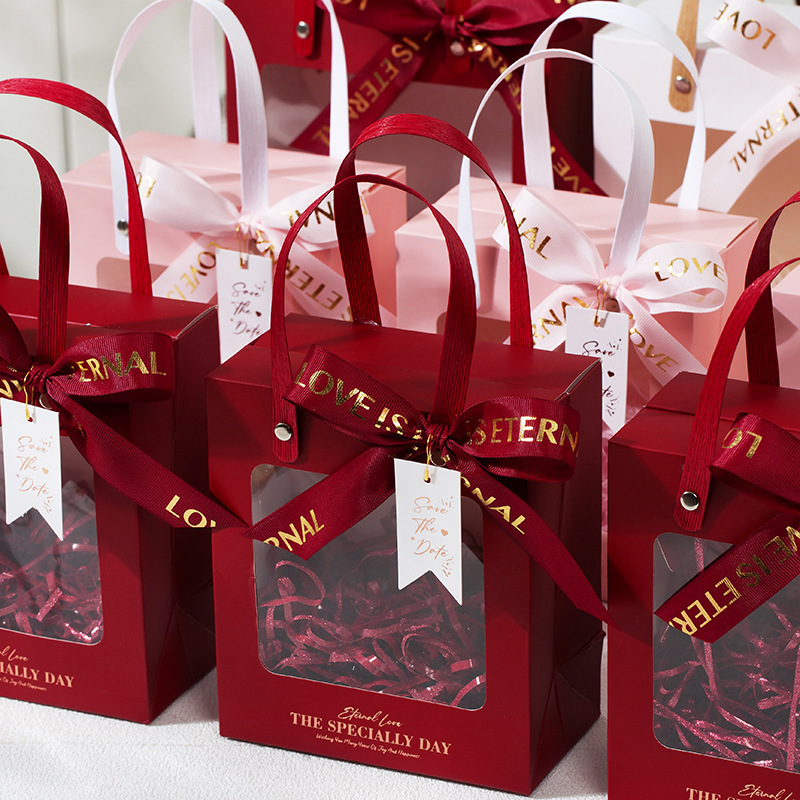 現物ギフトバッグ透明窓開け紙袋親友誕生日プレゼント包装結婚ギフトボックスお土産ケース卸売り