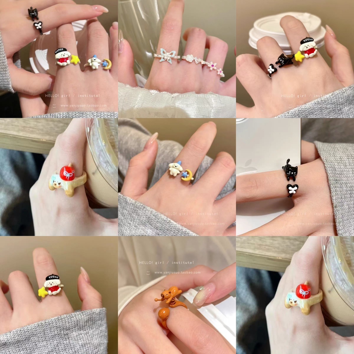 童趣可爱小狗滴釉戒指女小众设计感开口可调节食指戒卡通甜美指环