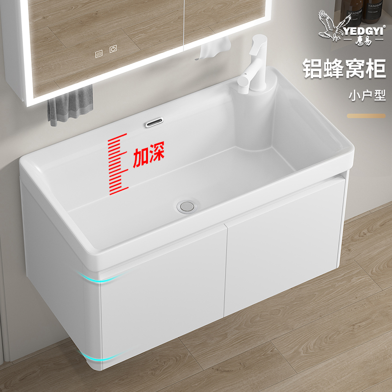 洗面器を深めます。浴室キャビネットセット一体トイレ洗面器壁掛け式超狭いサイズの洗面台です。