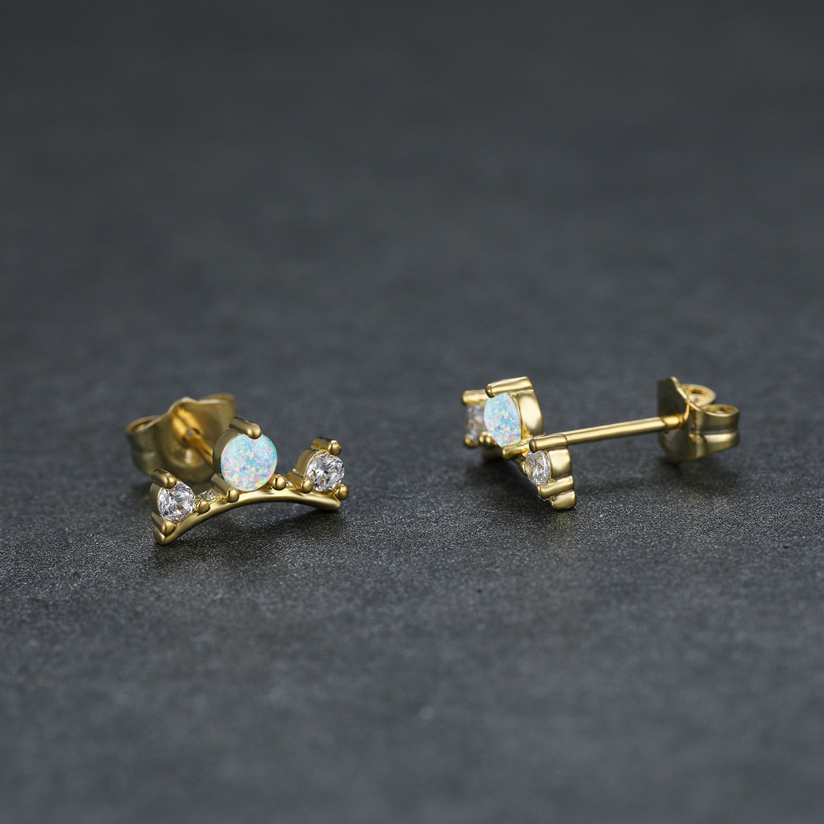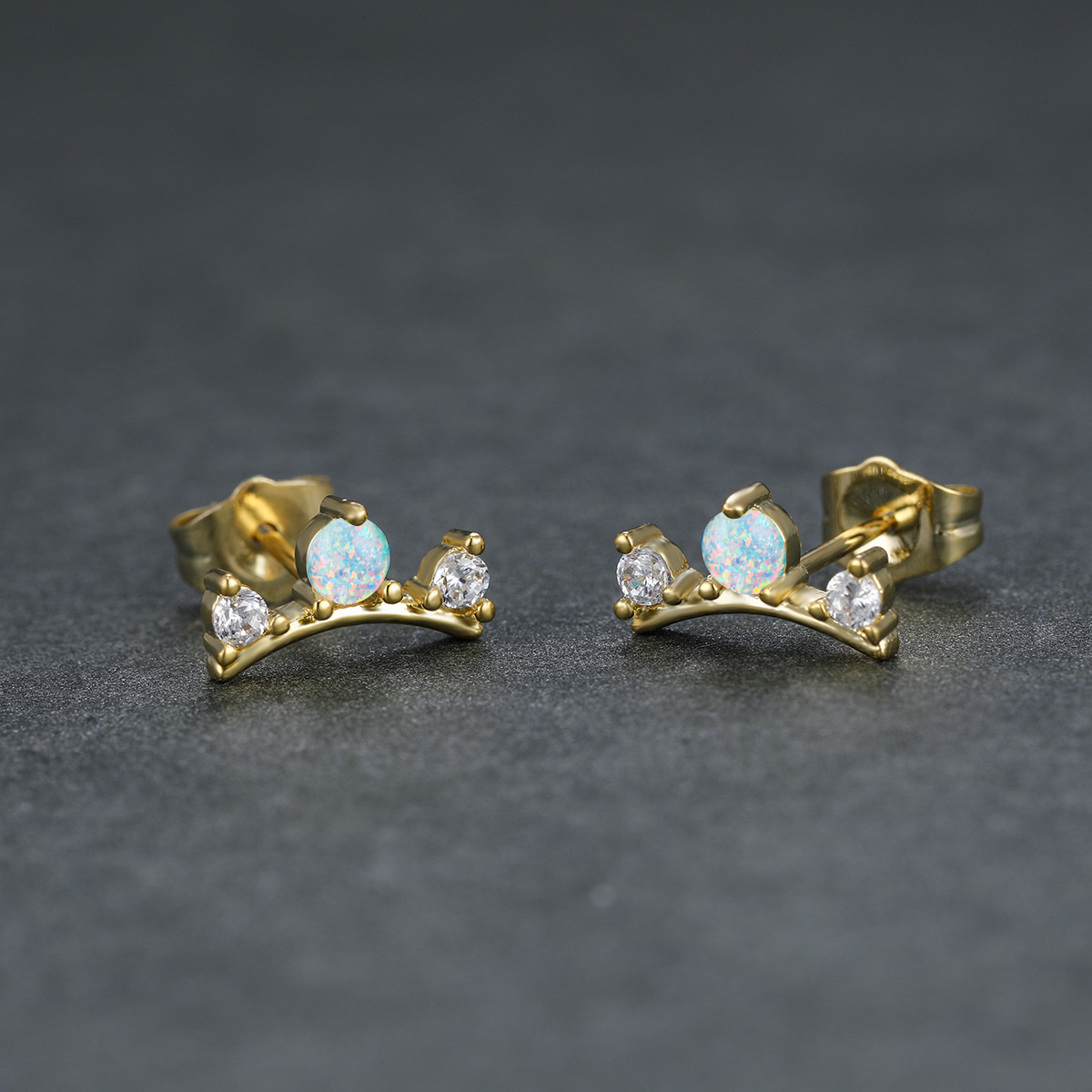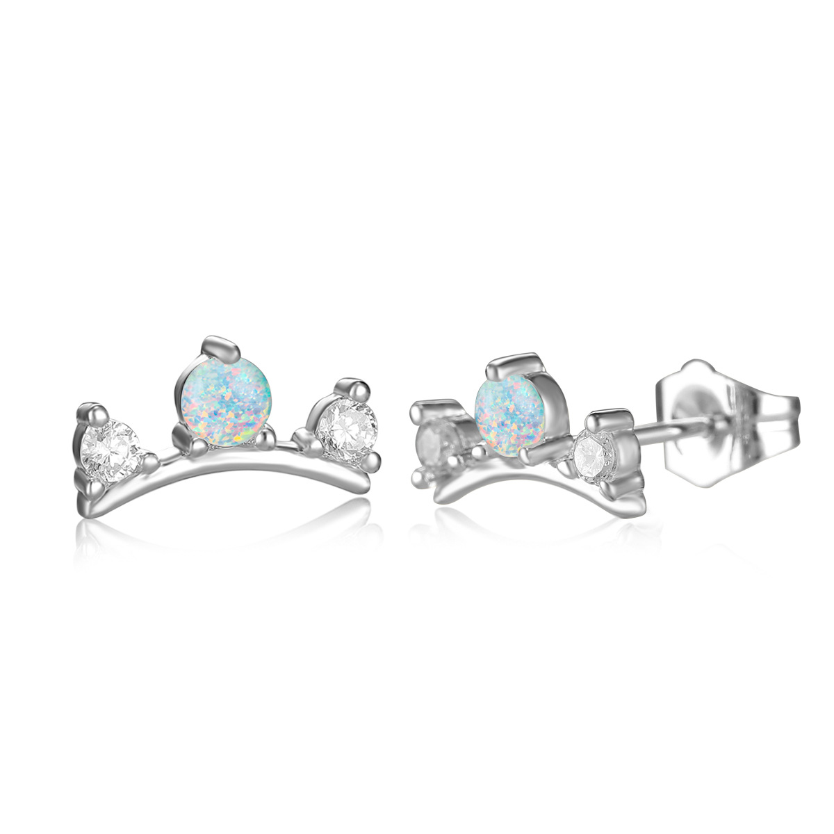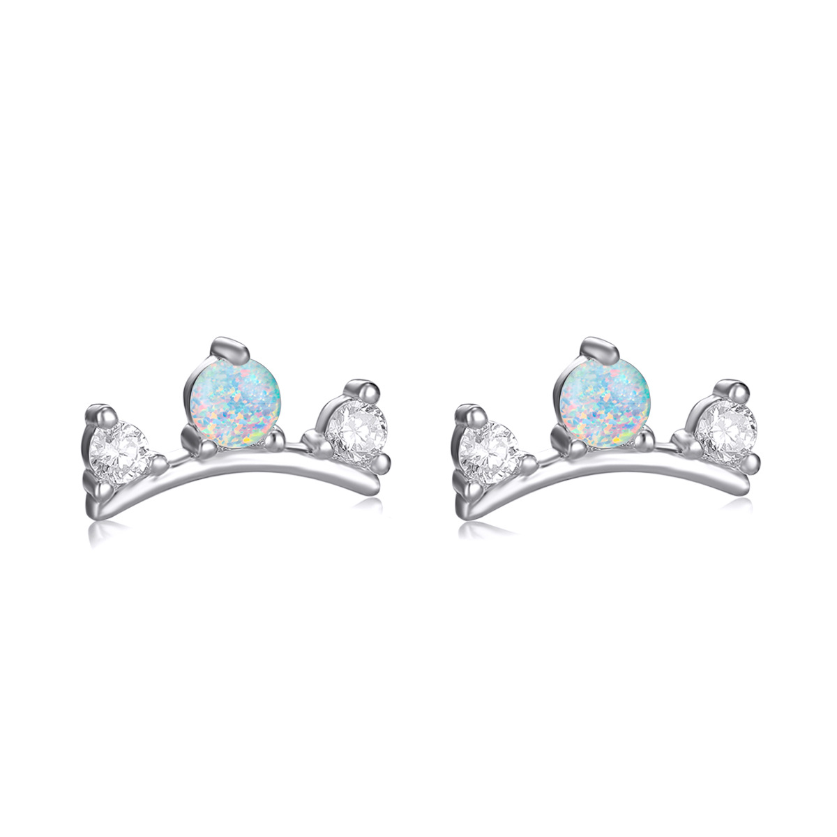 ヨーロッパとアメリカのシンプルなラウンドホワイトオパール象嵌ホワイトジルコンカーブイヤリング、小さくて就寝時に外す必要はありません。