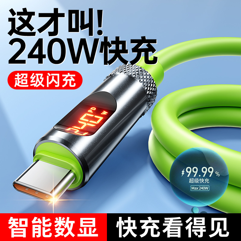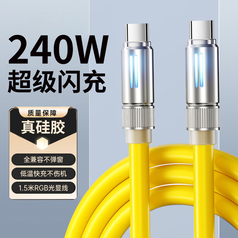 240W超急速充電携帯電話データケーブル真シリコンPD3.1変色呼吸灯急速充電車載急速充電延長