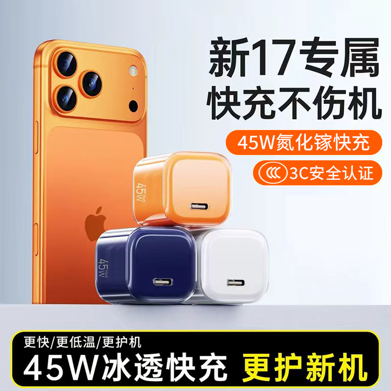 【45W氮化镓】适用苹果17充电器iPhone16ProMax快充头15充电套装
