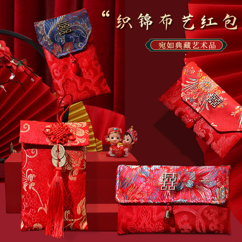 結婚祝いの結婚式の布芸万元の大きい赤い袋の創意刺繍の中国風の贈り物の金は結婚祝いを結びます。