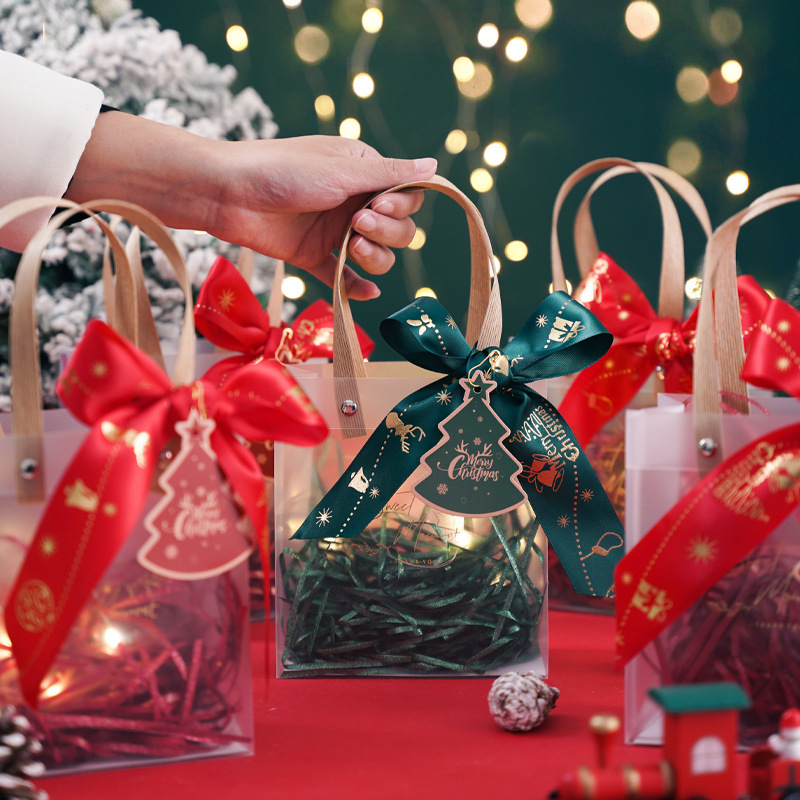 クリスマスの透明な贈り物の袋の高級感のお土産の小さいサイズの誕生日のクリスマスイブの手提げのリンゴの包装箱
