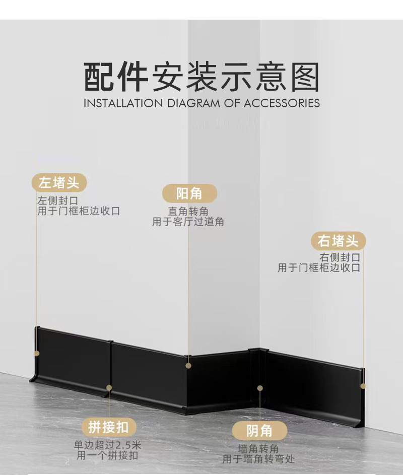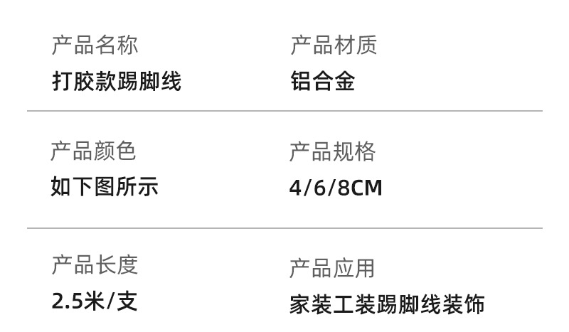 源头工厂卡扣式铝合金踢脚线条4/6/8公分 卡座铝合金踢脚线批发