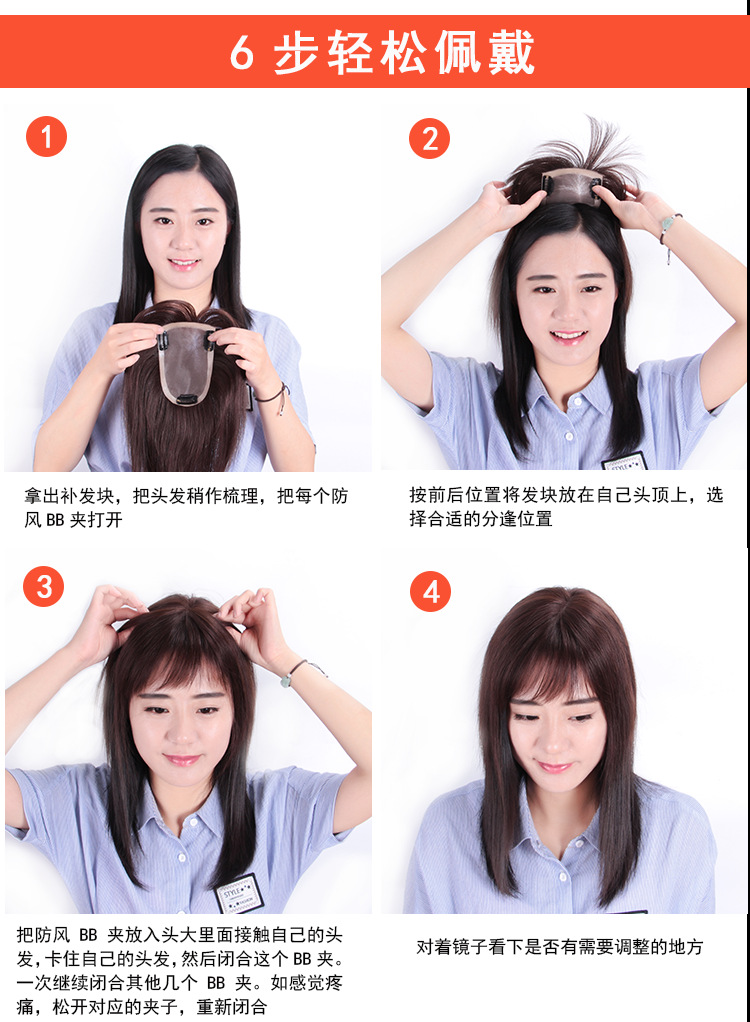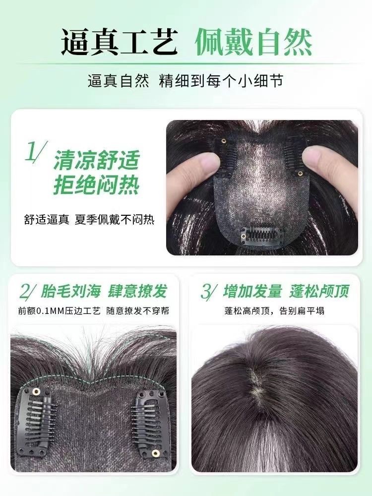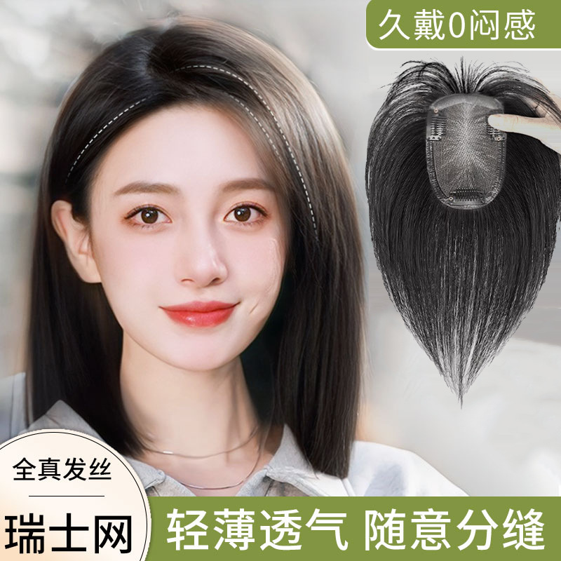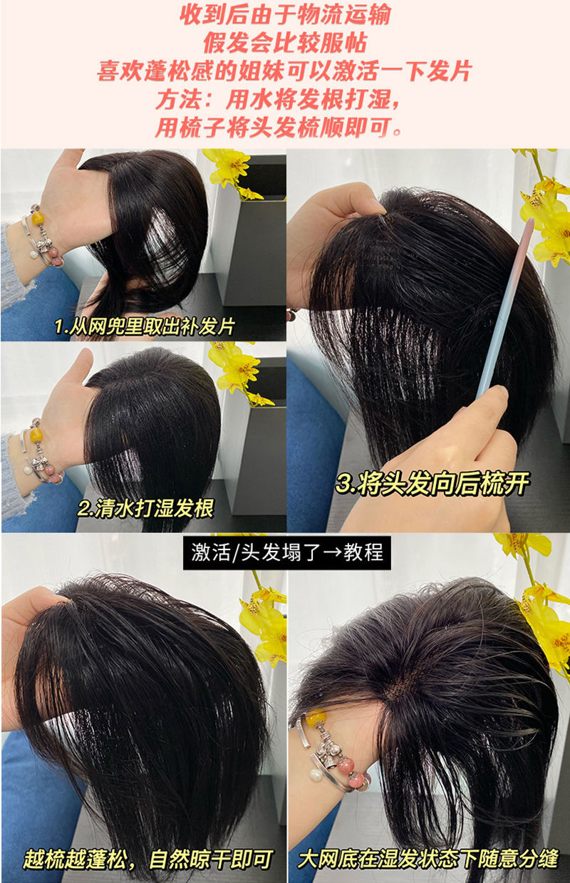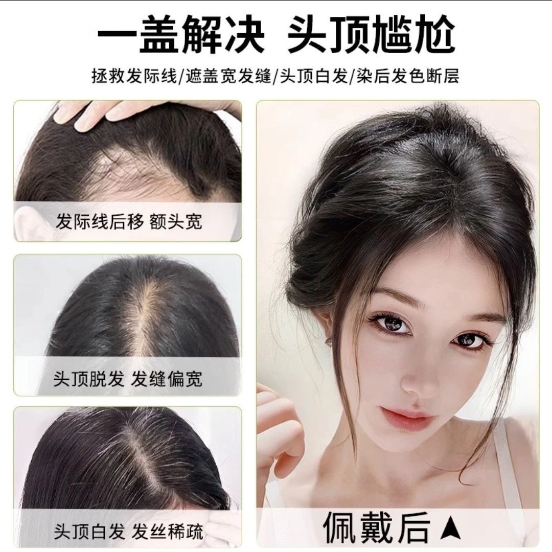 不带发网大面积仿真头皮假发片女头顶蓬松仿真发增发量刘海补发块