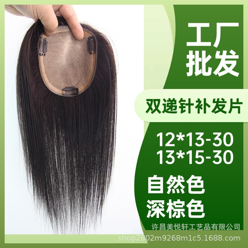双递针女士补发片全真发手工钩织仿真头皮夏季透气舒适自然假发片