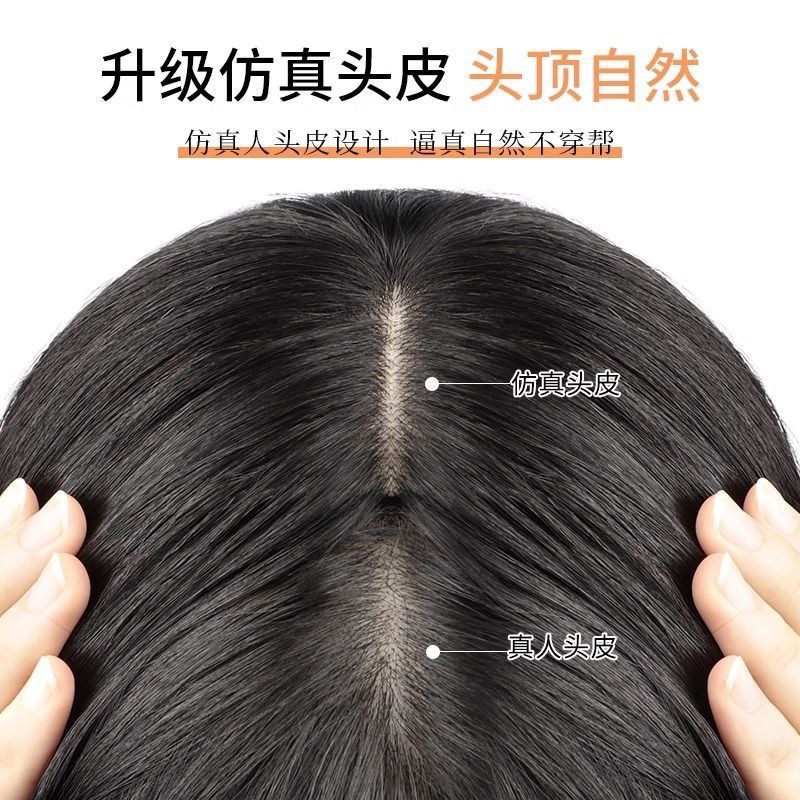 生物头皮真人发丝假发片蓬松气质真人假自然无痕一片式头顶补发
