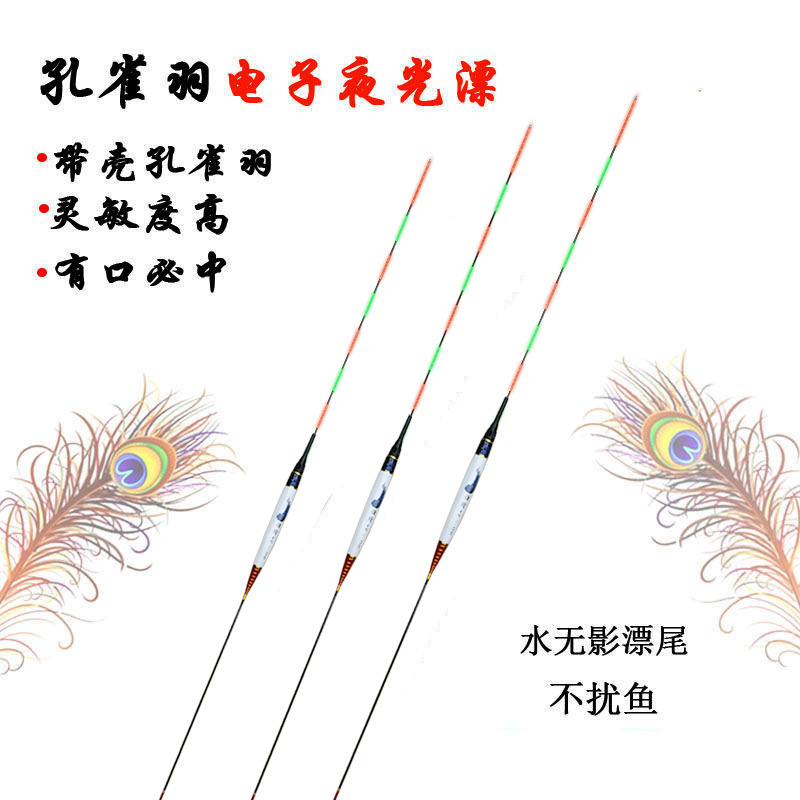 本物の孔雀羽電子夜光漂高鋭敏で目を引く昼と夜の両用フック変色フナ鯉浮き