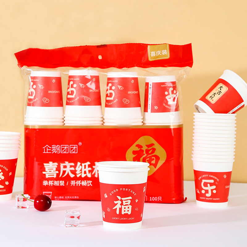 結婚使い捨て紙コップ卸売りは家庭用のお祝いコップを厚くして新年のお祝いの結婚式の赤いコップを使い捨てにする