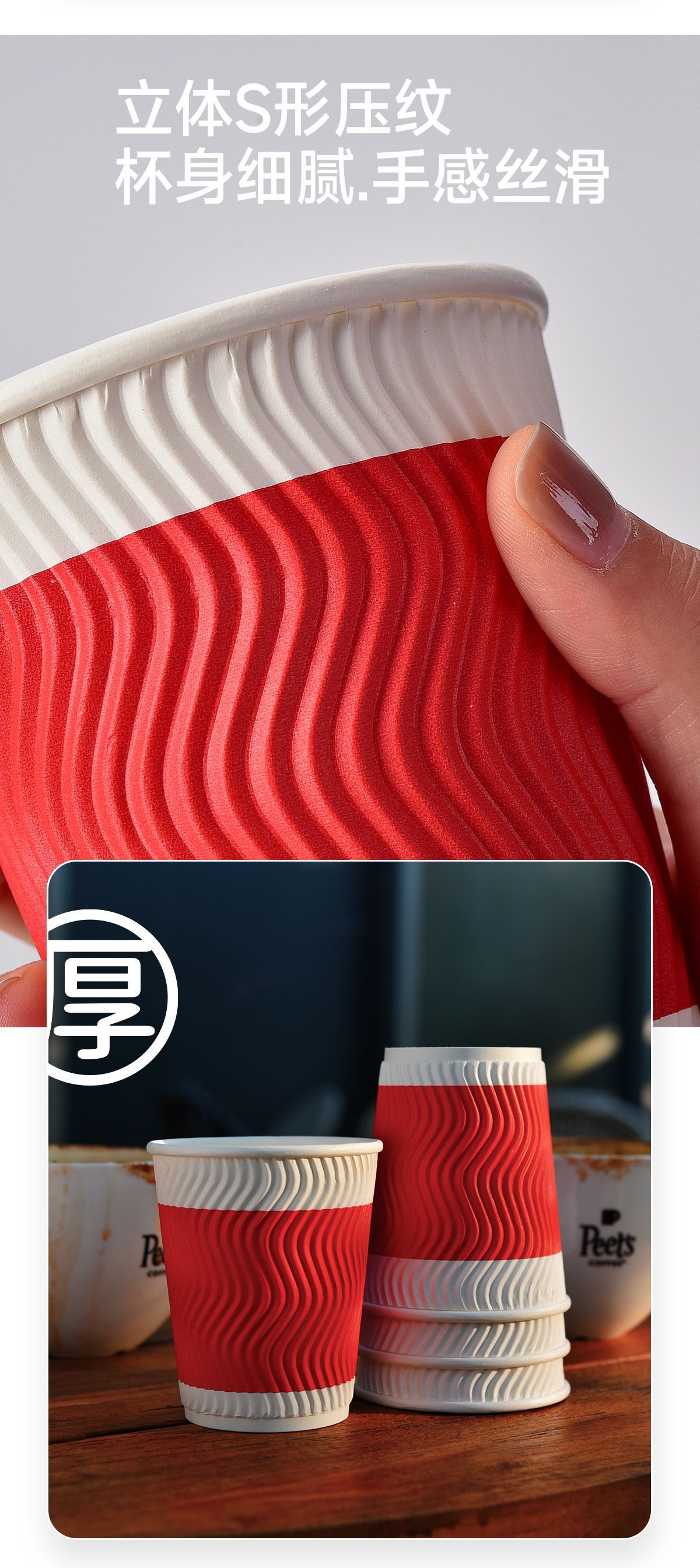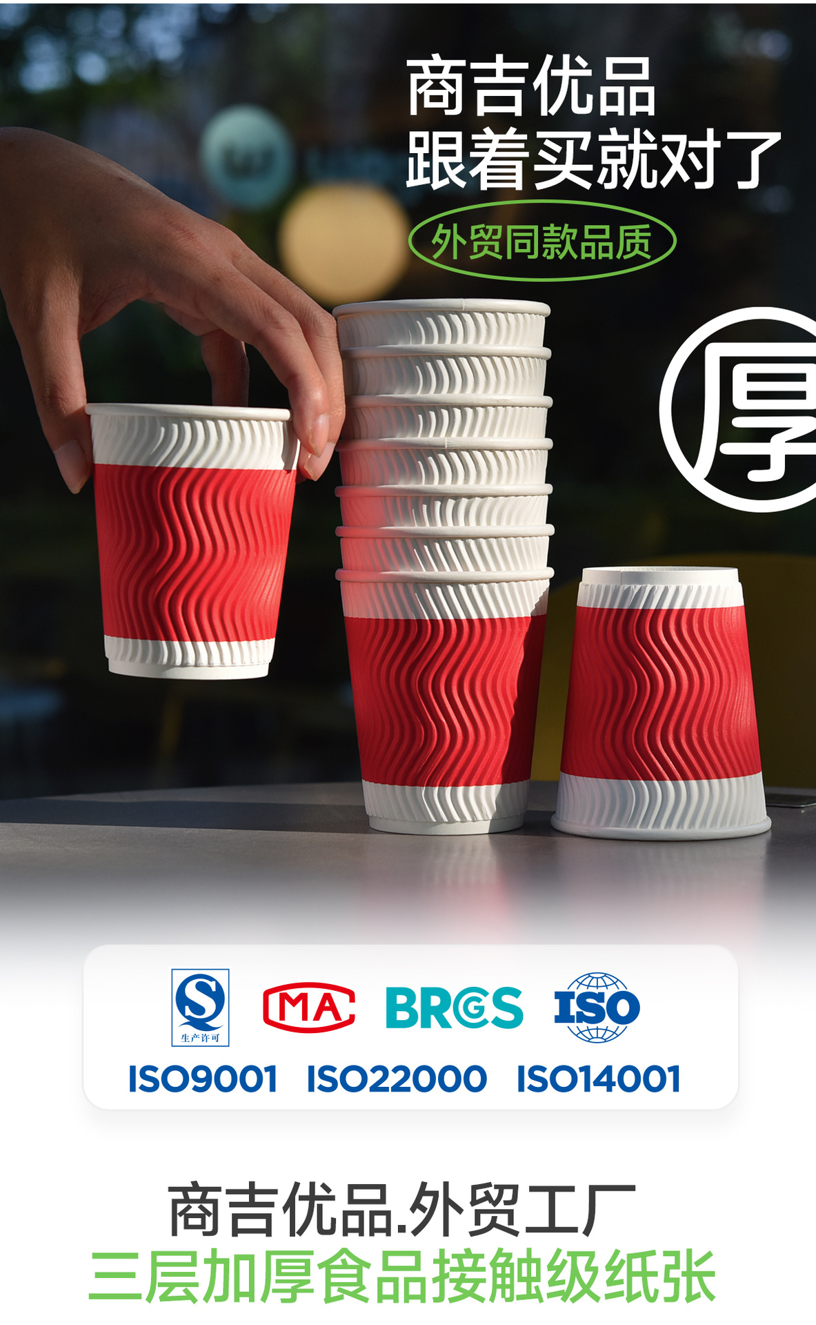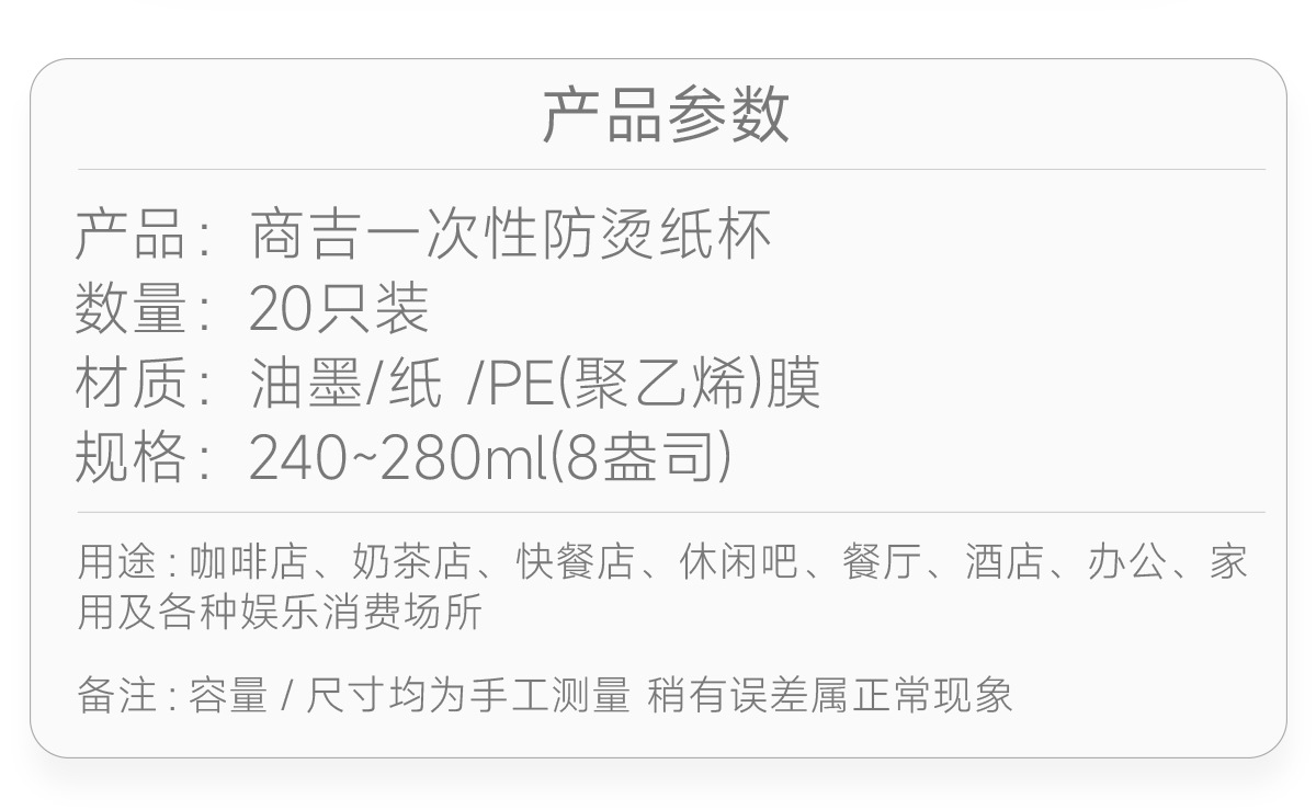 使い捨てコップは紙コップを厚くして、業務用家庭用コップの外に持ってきて、熱い飲み物のコップを250ml/50個詰めて郵送します。