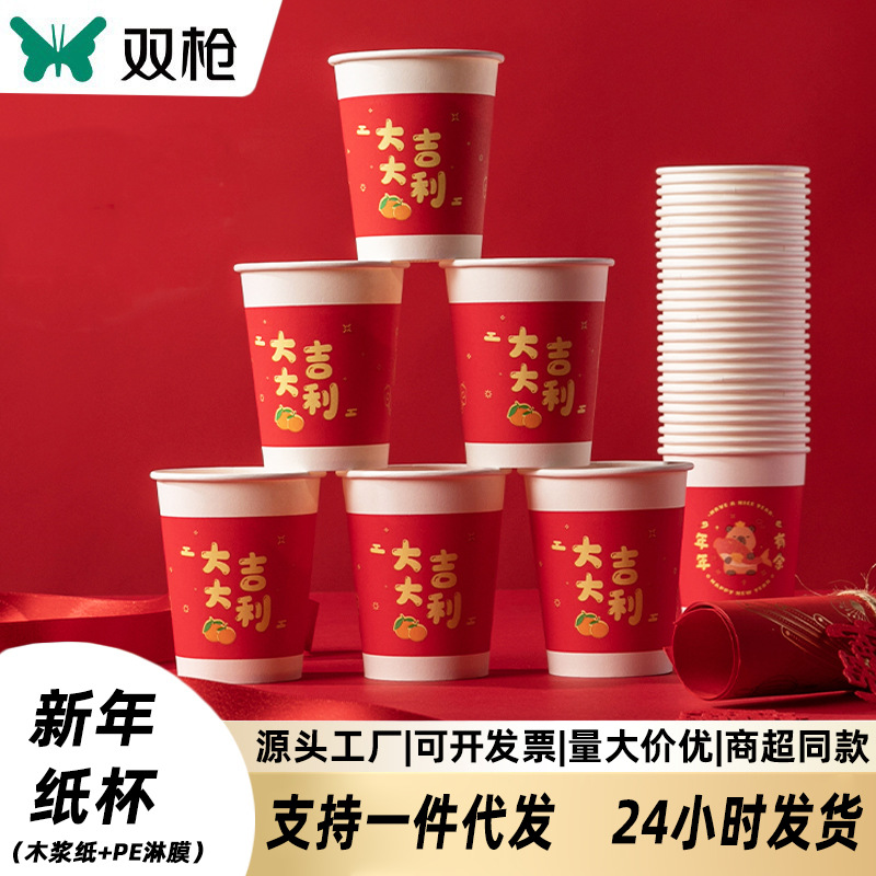 新年、巳年、馬年、春節用使い捨て紙コップ、巳年のお祝い、結婚式、家庭用、厚手の水コップ、中国風紙コップ