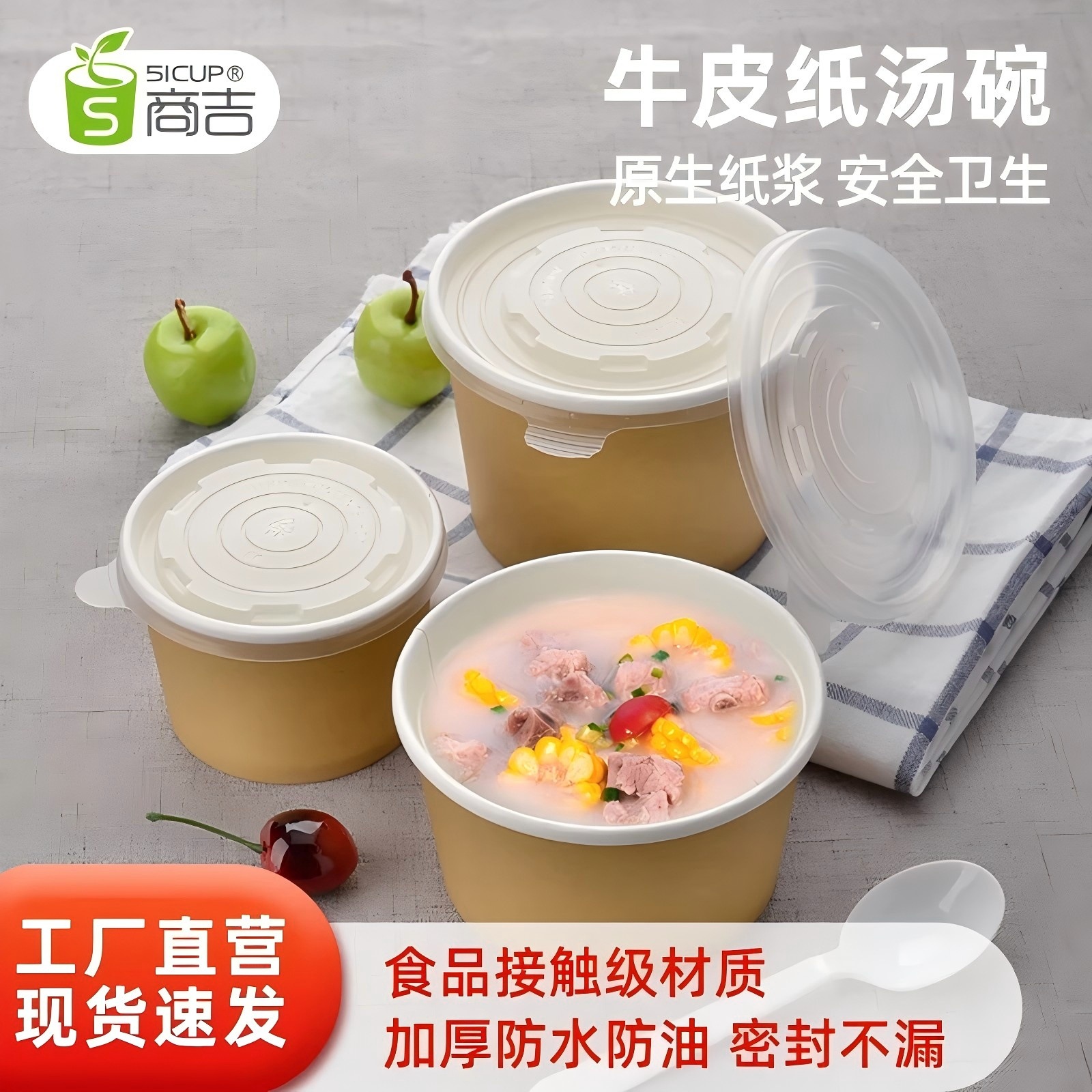 上海商吉クラフト紙碗使い捨て碗食品級紙蓋付き商用卸売り包装箱円形