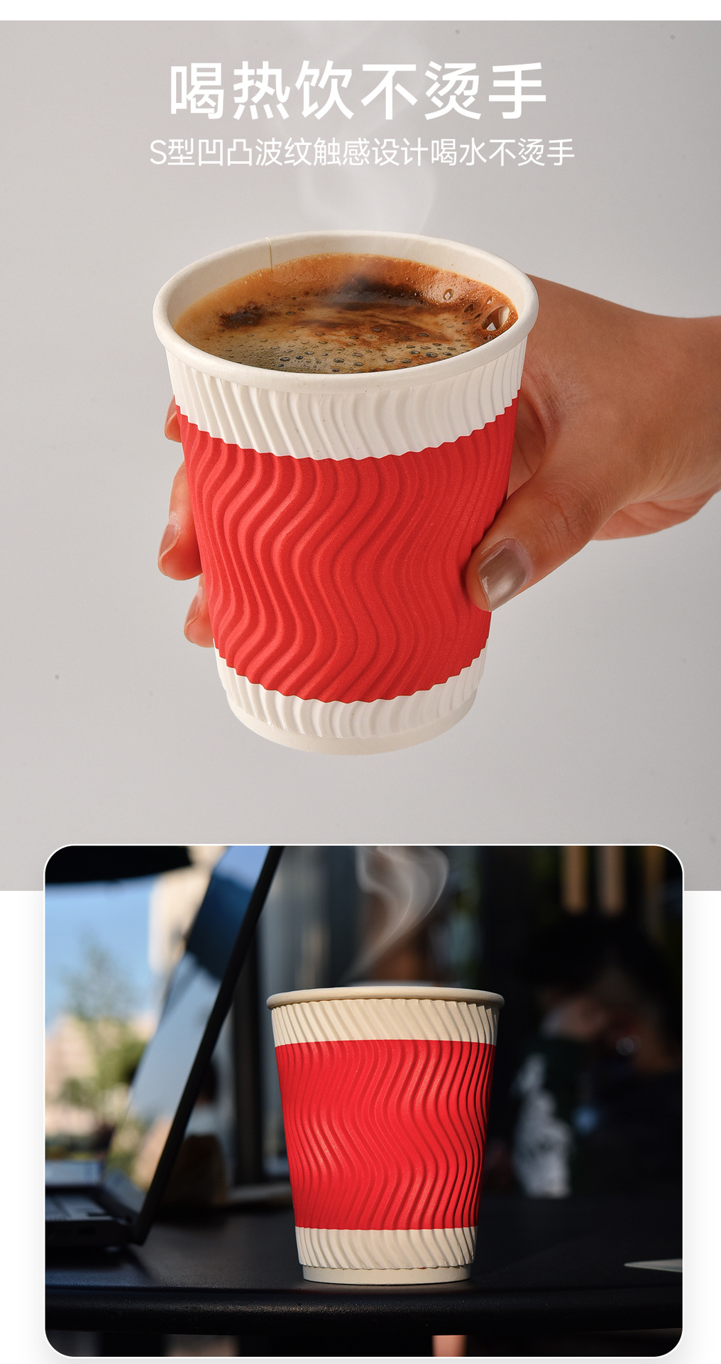 Shangji 紙カップ S 字型三層使い捨てホットドリンクカップ家庭用コーヒーミルクティー段ボール火傷防止カップ蓋付き