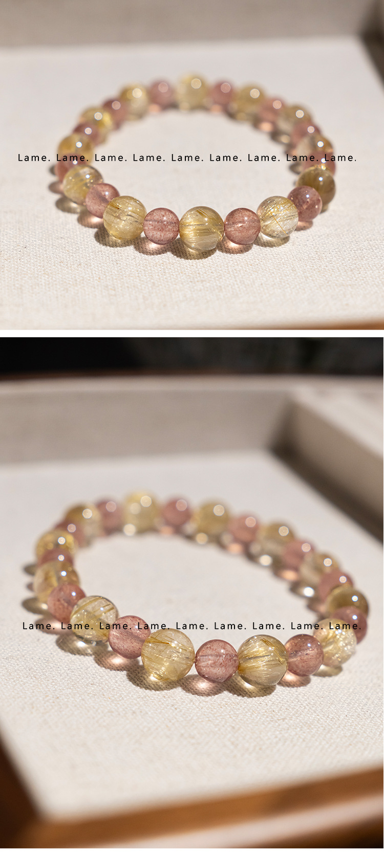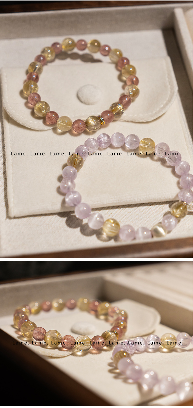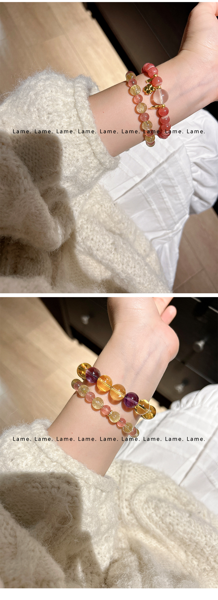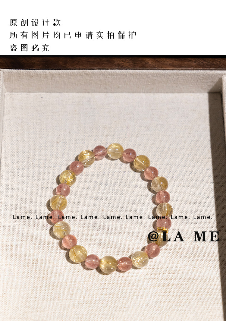天然の金の結晶のブレスレットの女性のイチゴの結晶の幸運の手の串のシンプルなオリジナルの水晶の数珠の手はバレンタインデーの贈り物を飾ります。