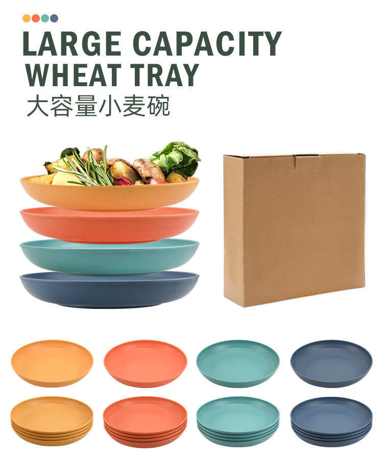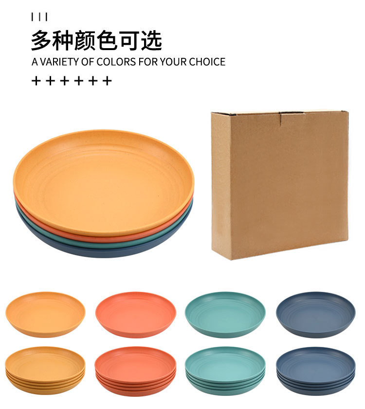 Amazon クロスボーダー 小麦わら 23cm ディスクセット 家庭用野菜プレート フルーツプレート サラダプレート 4個箱入り