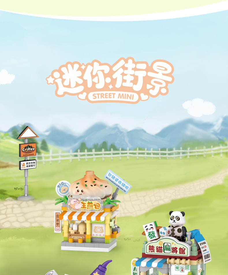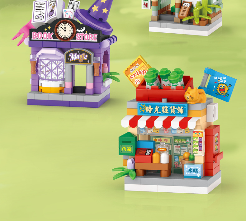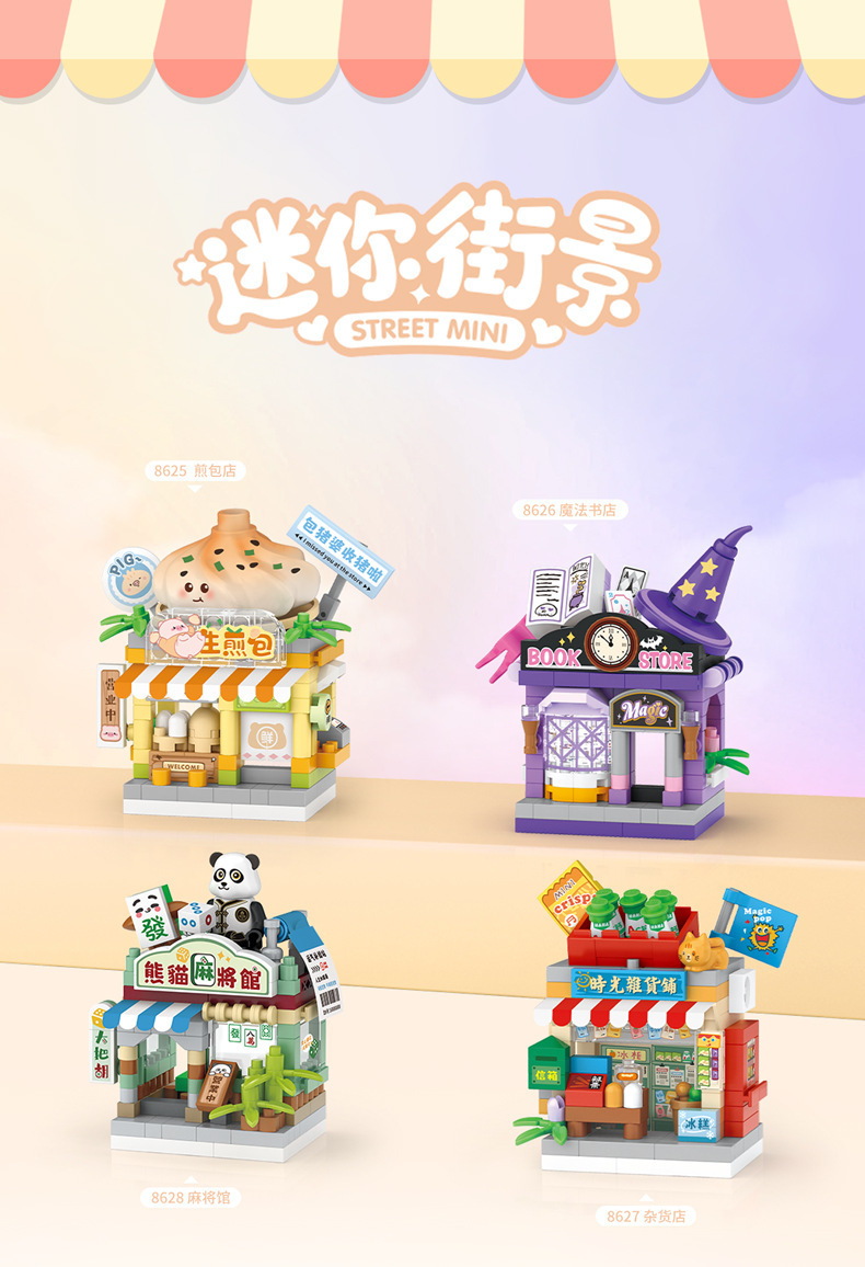 リー智Loz積み木街景生煎包店魔法書店パンダ麻雀館智児童プレゼント露店卸売り