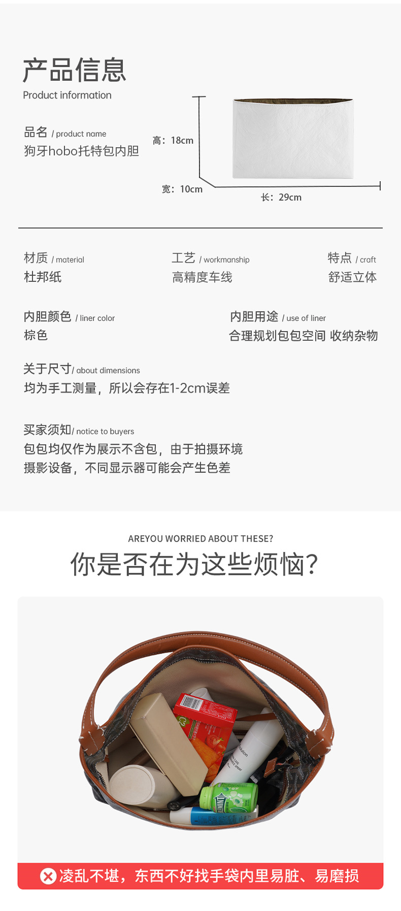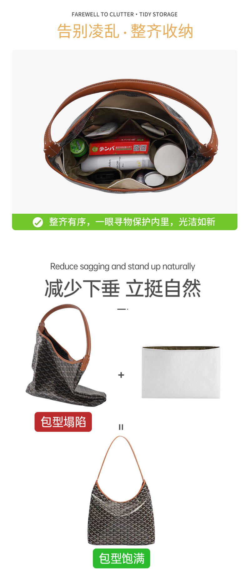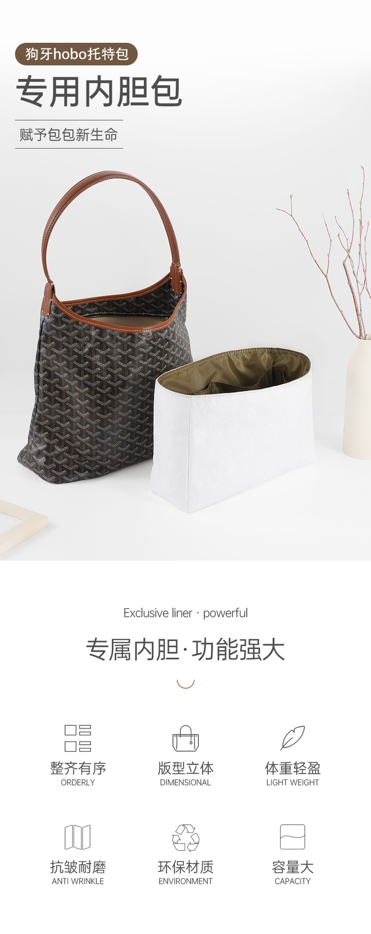 Goyard Goya Dogtooth Hobo Dupont 紙ライナーバッグ ショルダーパッド付き 軽量防水インナーバッグ ミディアムバッグサポート収納バッグ